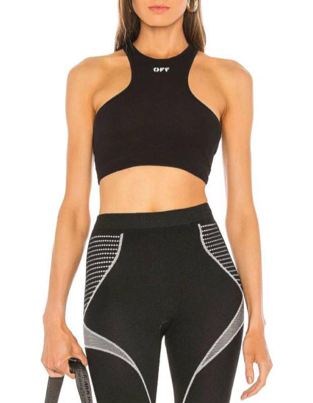 Топ Off-White™ LUX-91220 - это стильный женский топ в современном стиле. Топ выполнен в черном цвете с небольшим логотипом бренда. Идеально подойдет для создания модных спортивных образов или в качестве элемента повседневного гардероба.