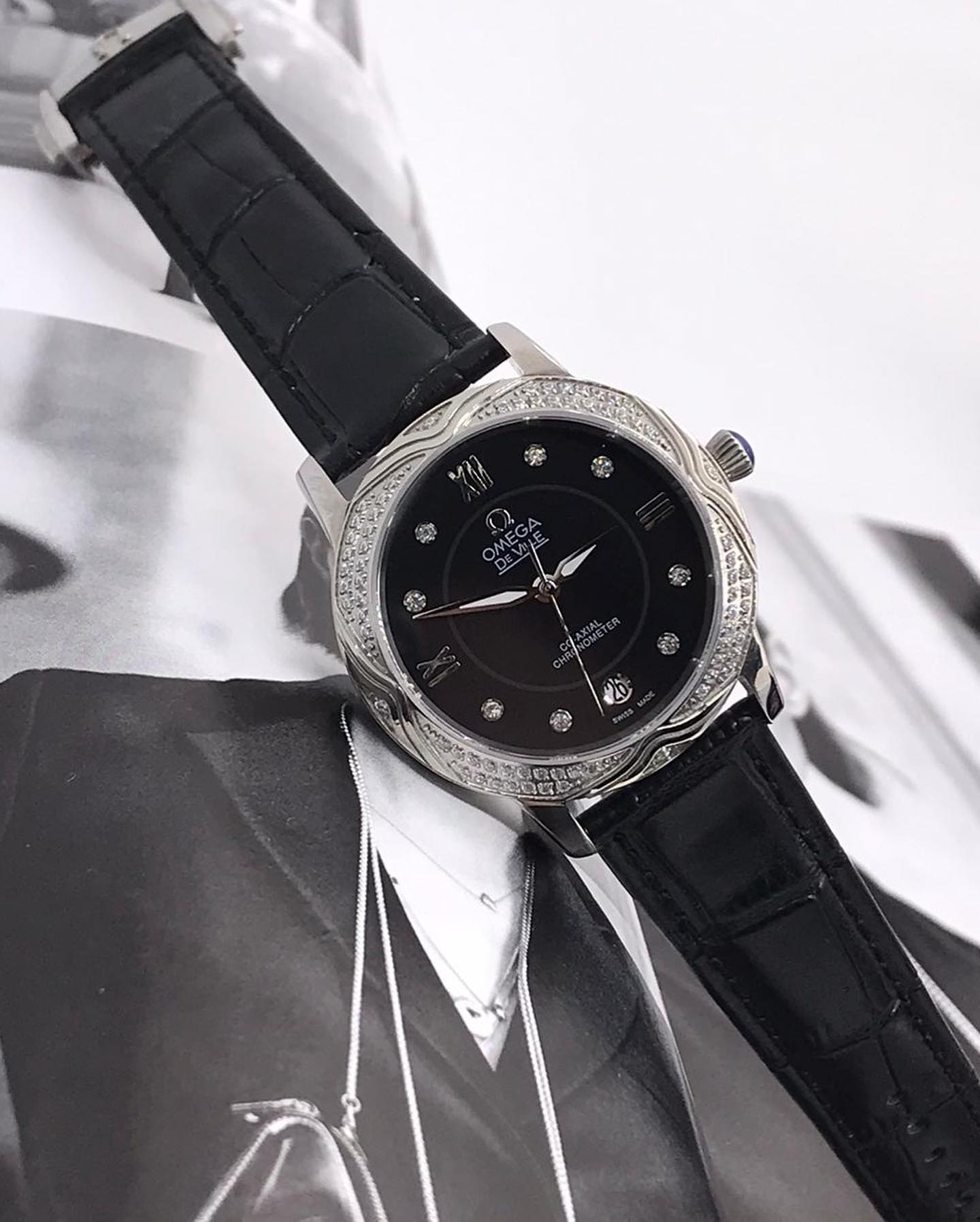 Часы Omega LUX-47939 представляют собой элегантное женское ювелирное украшение. Эти часы из коллекции De Ville отличаются изысканным дизайном, сочетающим классические линии с роскошными деталями. Черный циферблат с римскими цифрами и бриллиантовыми индексами, обрамленный сияющим ободком из камней, подчеркивает утонченность модели.