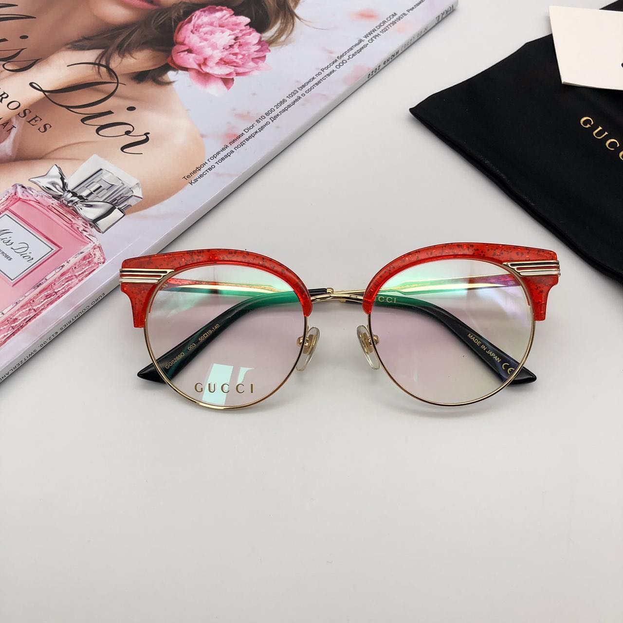 Эти очки Gucci LUX-31334 — стильный аксессуар, который подчеркнет вашу индивидуальность. Модель выполнена в современном дизайне, сочетающем классические формы и яркие детали. Красная полупрозрачная оправа с блестками и золотистые элементы придают оправе роскошный вид.