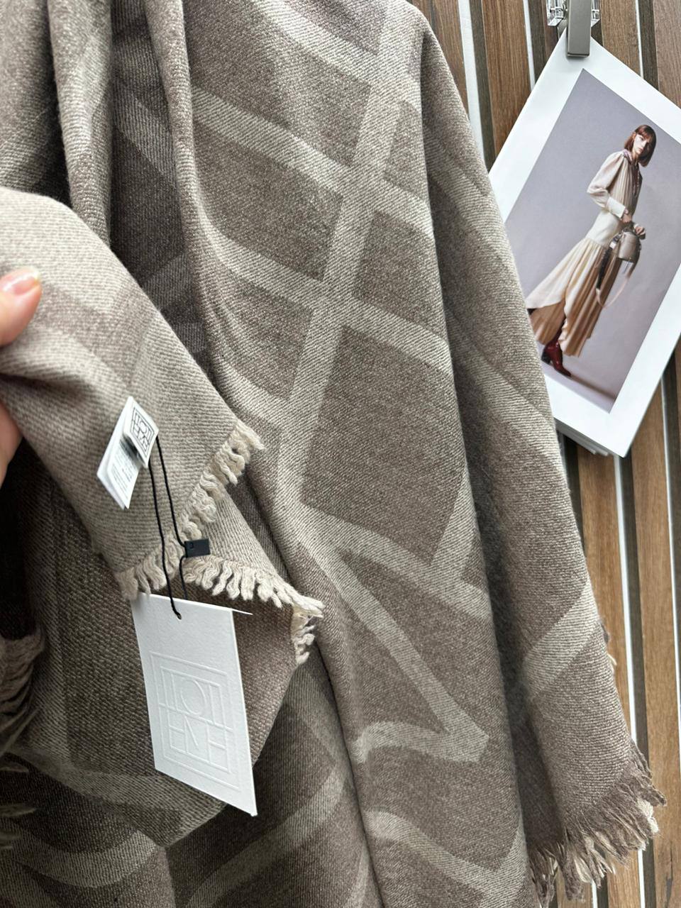 Палантин Toteme LUX-111792 — это элегантный аксессуар, сочетающий в себе стиль и комфорт. Палантин выполнен в нейтральных тонах, имеет прямоугольную форму с бахромой по краям и узор в виде геометрических фигур. Он станет прекрасным дополнением к вашему образу, придавая ему изысканность и тепло.