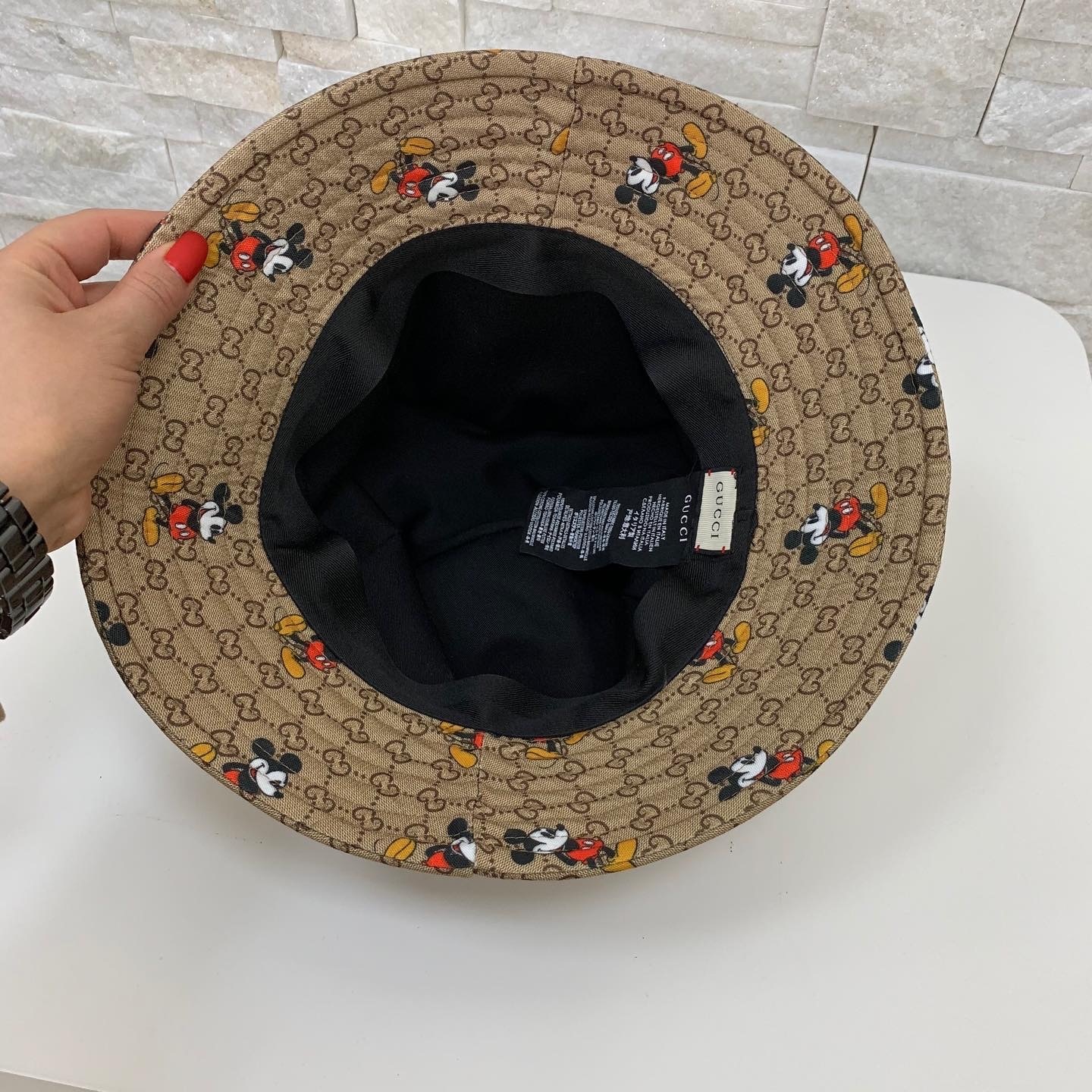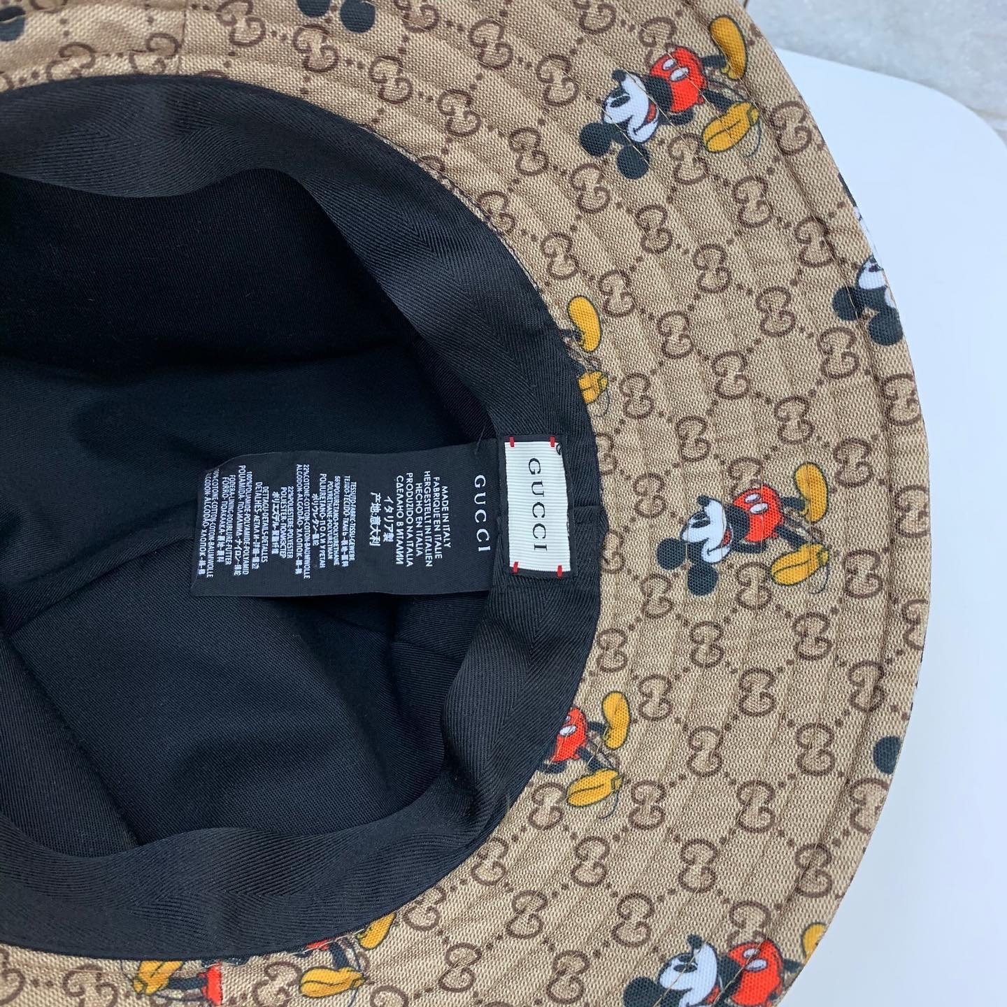 Панама Gucci LUX-29596 — это стильный головной убор, сочетающий в себе классический дизайн и игривый принт с Микки Маусом. Эта панама от Gucci станет ярким акцентом в любом образе, подчеркивая индивидуальность владельца. Отлично подойдет для летних прогулок и отдыха.