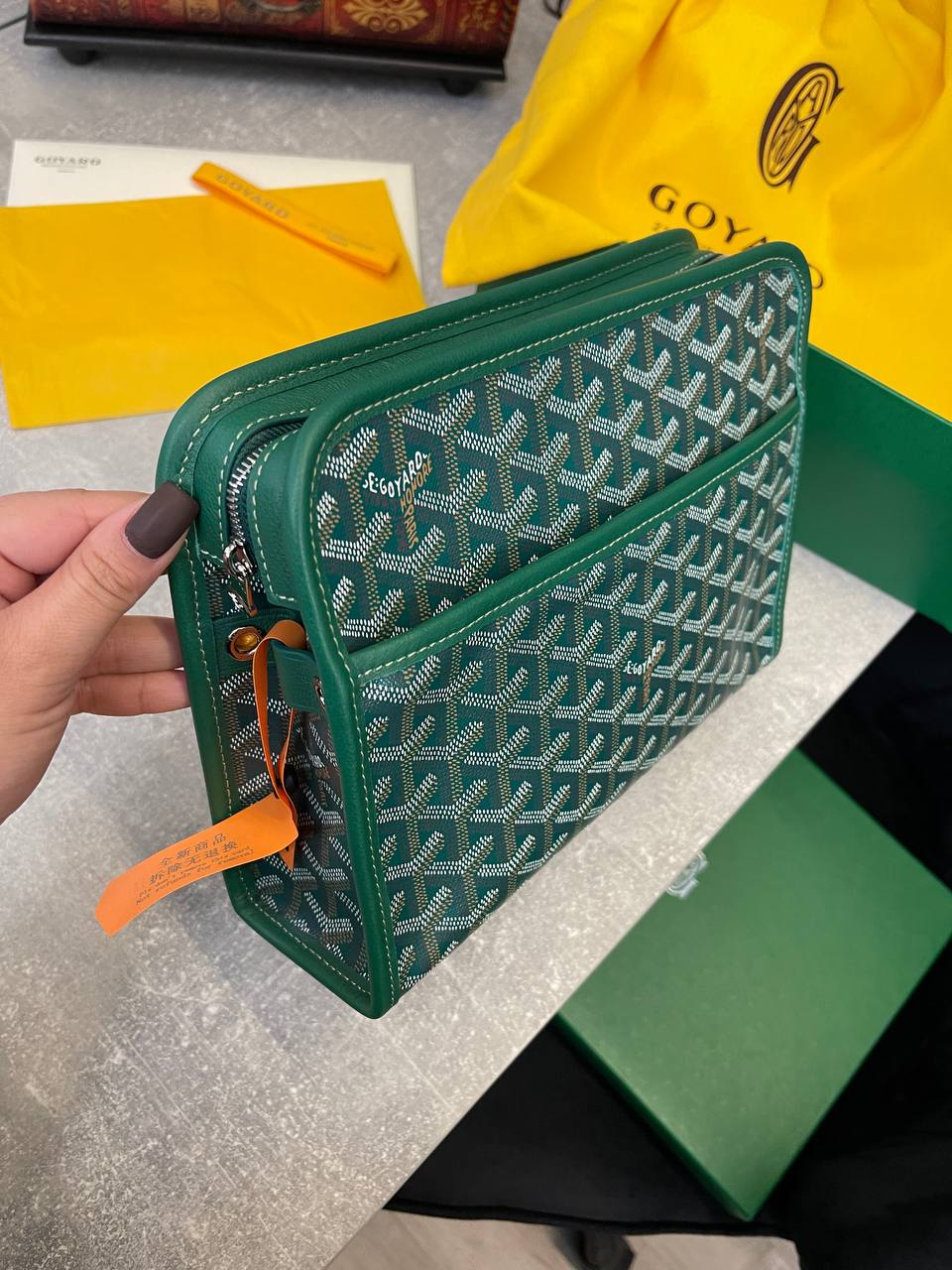 Папка Goyard 25 см LUX-97242 - это элегантный аксессуар для хранения и переноски документов, выполненный в фирменном стиле бренда. Папка выполнена в темно-зеленом цвете с узнаваемым узором. Она подойдет для тех, кто ценит стиль и практичность.