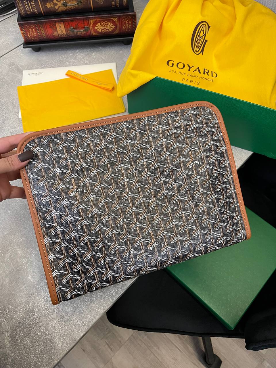 Папка Goyard 30 см (LUX-97243) — это изысканный аксессуар, сочетающий в себе французский шик и функциональность. Папка выполнена в классическом стиле, узнаваемым по фирменному узору бренда, с контрастной отделкой. Предназначена для хранения документов и подчеркивает статус владельца.