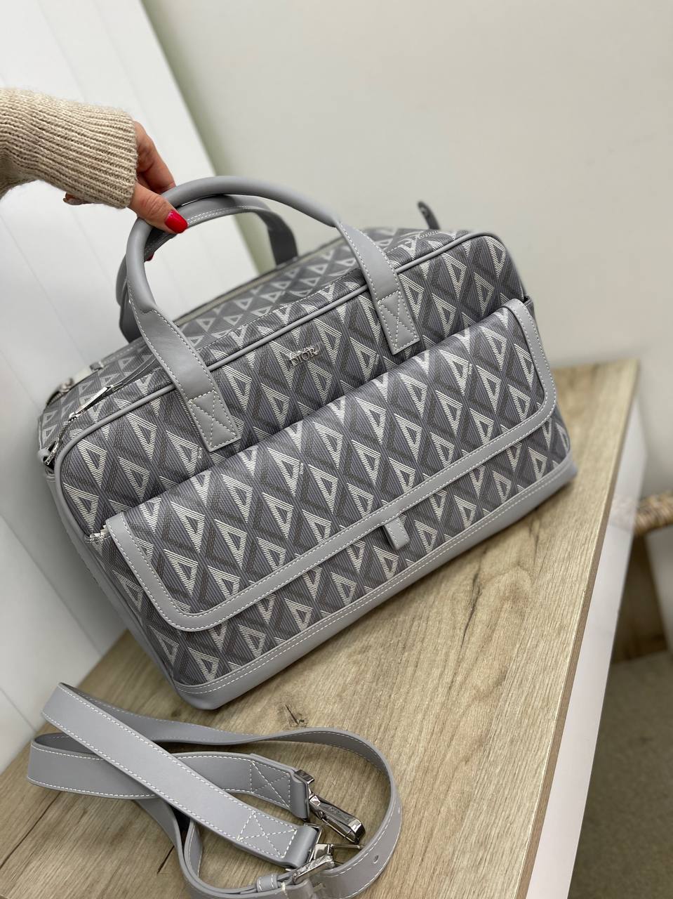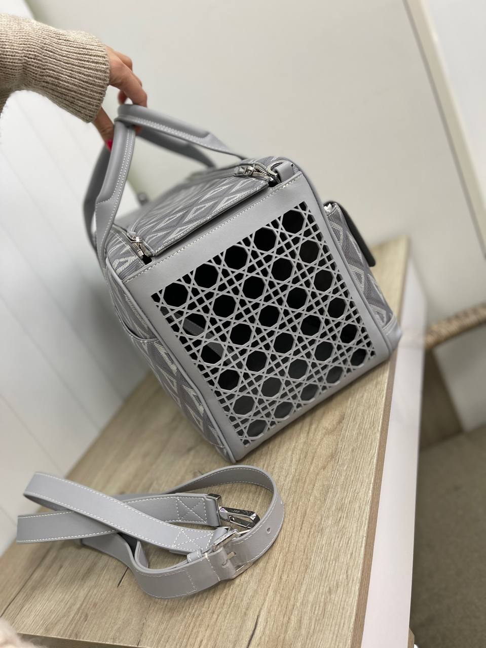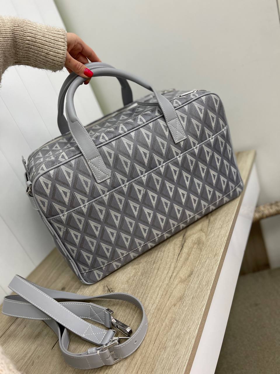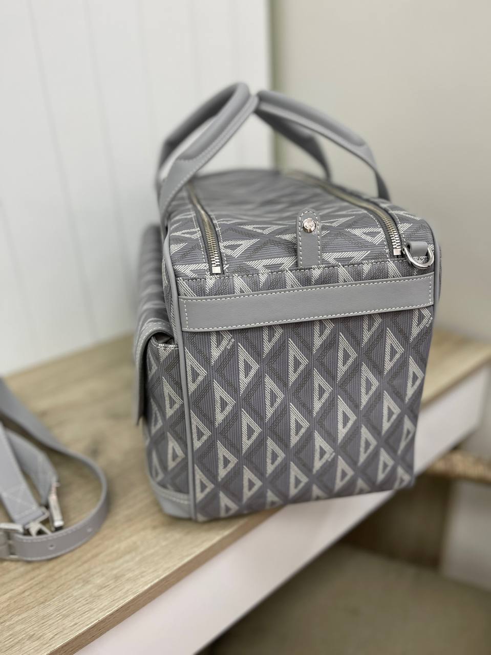 Переноска 40 см LUX-86760 — это стильная и практичная сумка для переноски животных. Серая сумка с уникальным геометрическим принтом в виде треугольников, дополнена серыми кожаными деталями. Дизайн подчеркивает элегантность и функциональность аксессуара.