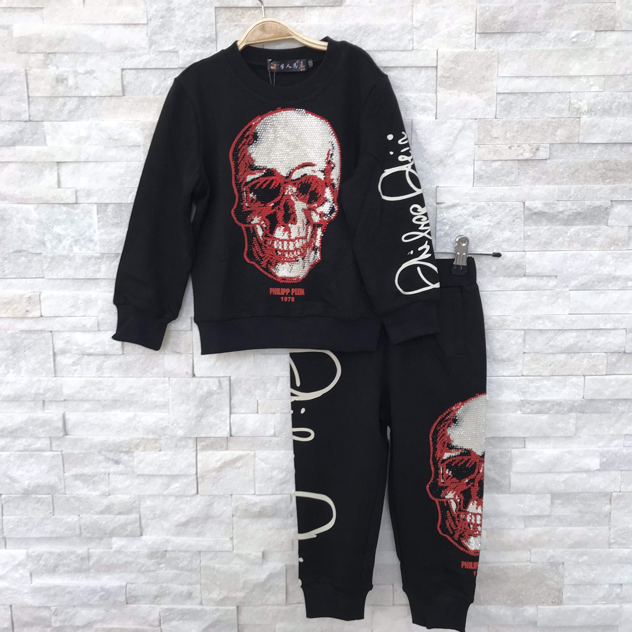 Костюм спортивный детский Philipp Plein LUX-17696 представляет собой стильный и узнаваемый комплект для юных модников. Бренд Philipp Plein известен своими эпатажными дизайнами, и этот костюм не исключение. Яркий принт в виде черепа, украшенный блестящими стразами, делает эту модель заметной и привлекательной. Классический черный цвет костюма позволяет легко сочетать его с другой одеждой.