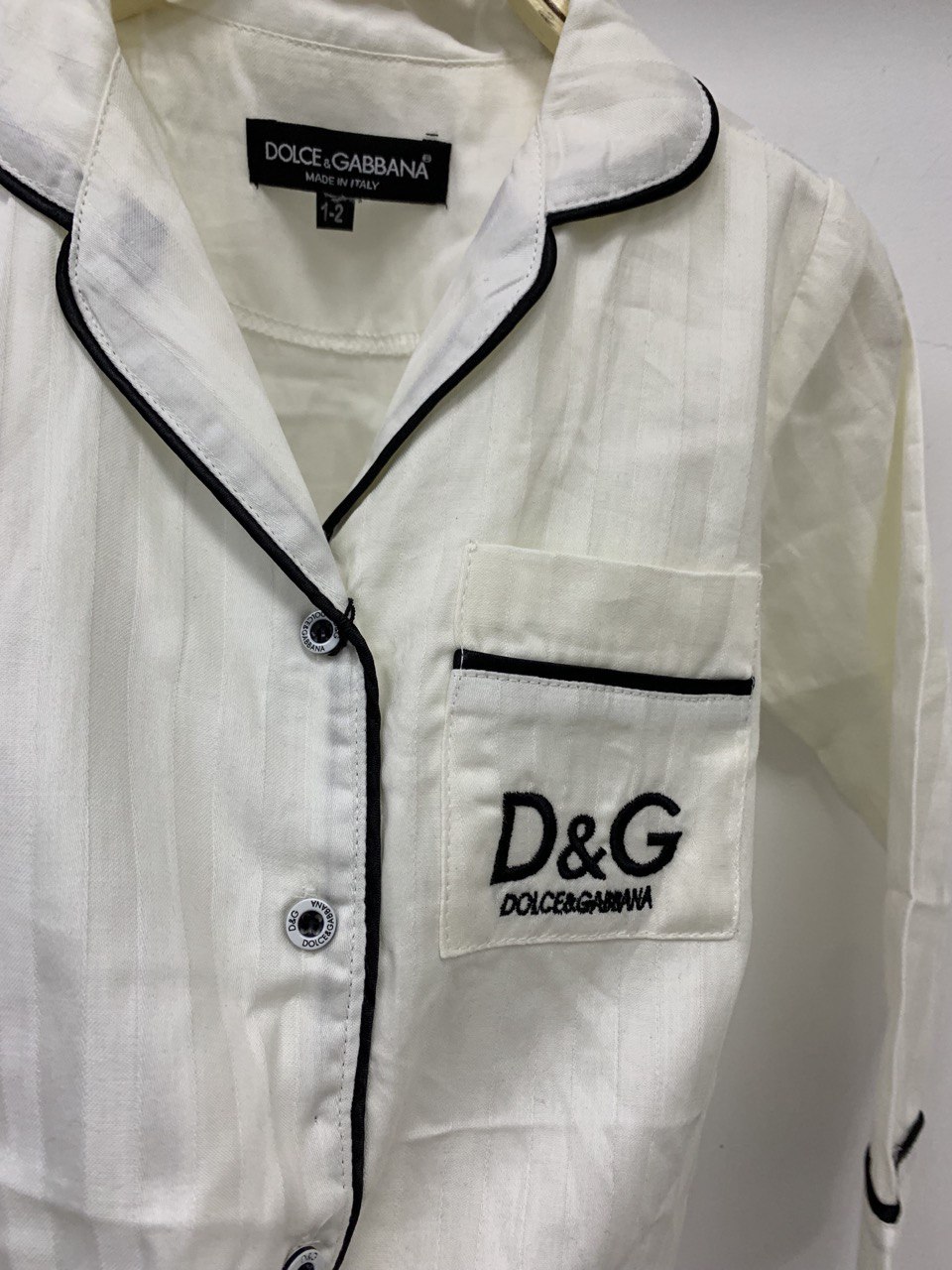 Пижама Dolce & Gabbana LUX-85118 – это элегантный комплект для сна. Он выполнен в классическом стиле, сочетающем комфорт и изысканность. Нежный белый цвет и контрастная черная отделка создают утонченный образ. Пижама идеально подойдет для отдыха дома.