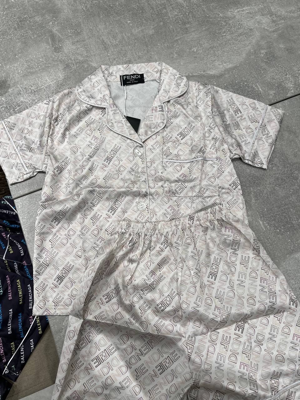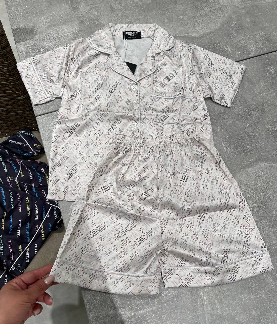 Пижама Fendi LUX-119891 – это воплощение элегантности и комфорта для вашего сна. Комплект состоит из рубашки с короткими рукавами и шорт, выполненных в нежном бело-розовом цвете, с повторяющимся логотипом бренда. Этот наряд – идеальный выбор для тех, кто ценит изысканный стиль даже в домашней обстановке.