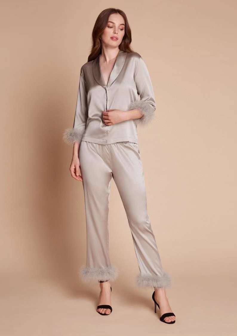 Пижама LUX-97802 от бренда Luxe Crime – это изысканный комплект, выполненный в элегантном стиле. Пижама, представленная на изображении, выполнена в нежном сером цвете, обладает атласной текстурой, а отделка из перьев добавляет нотку роскоши. Идеальный выбор для создания уютной атмосферы и ощущения комфорта дома.