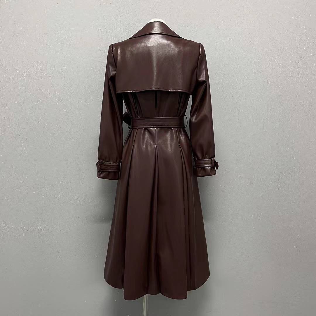 Плащ LUX-102912 представляет собой элегантный плащ в классическом стиле. Он выполнен в глубоком коричневом цвете с текстурой, напоминающей кожу. Такой плащ идеально подойдет для создания стильного образа в прохладную погоду.