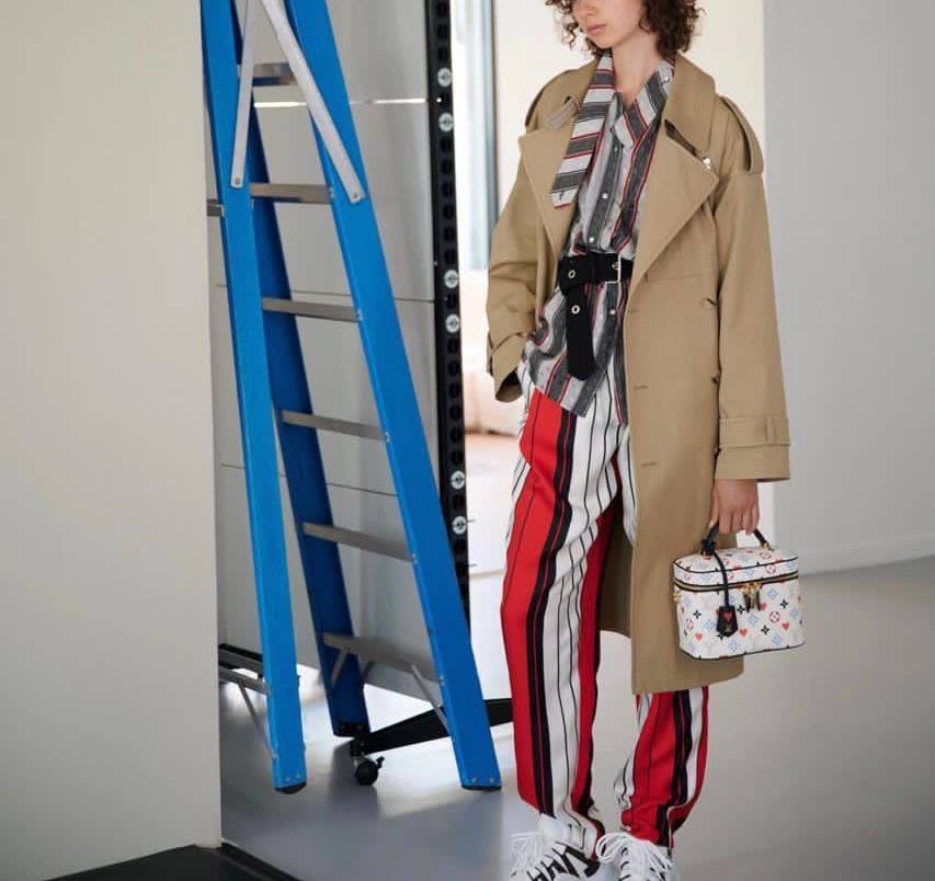 Плащ Louis Vuitton LUX-49310 представляет собой стильное и элегантное решение для современного гардероба. Бежевый тренч с классическим силуэтом и лаконичными деталями воплощает в себе изысканность и практичность. Он прекрасно дополняет яркие брюки в полоску и рубашку, создавая актуальный образ.