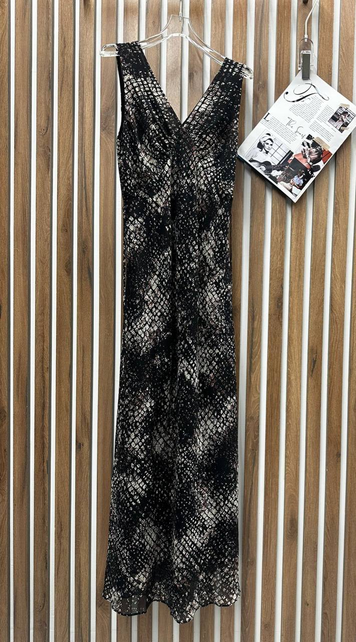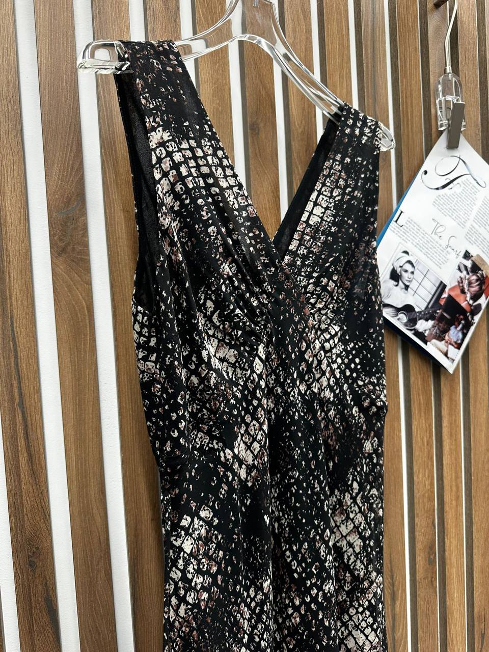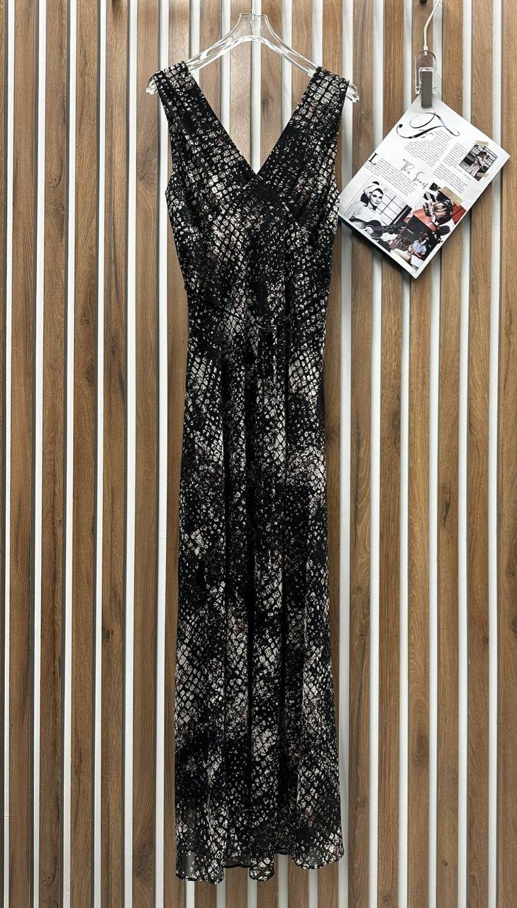 Платье LUX-132033 – это элегантное женское платье с V-образным вырезом, которое идеально подойдет для создания стильного и запоминающегося образа. Модель выполнена в черном цвете с оригинальным узором.