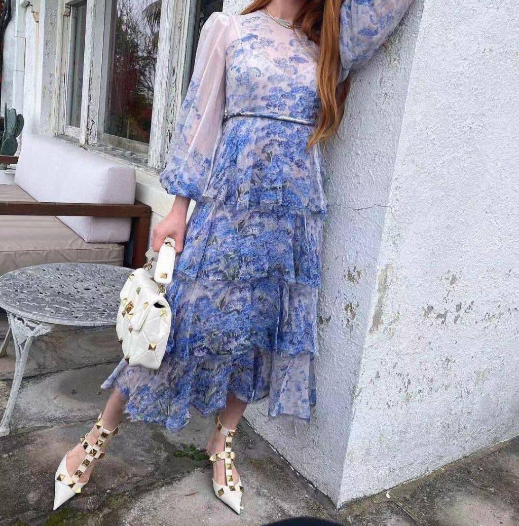 Платье LUX-70599 – это изысканное платье с цветочным принтом. Платье выполнено в нежном голубом цвете с романтичным цветочным узором. Его полупрозрачный верх и длинные рукава создают воздушный и женственный образ.