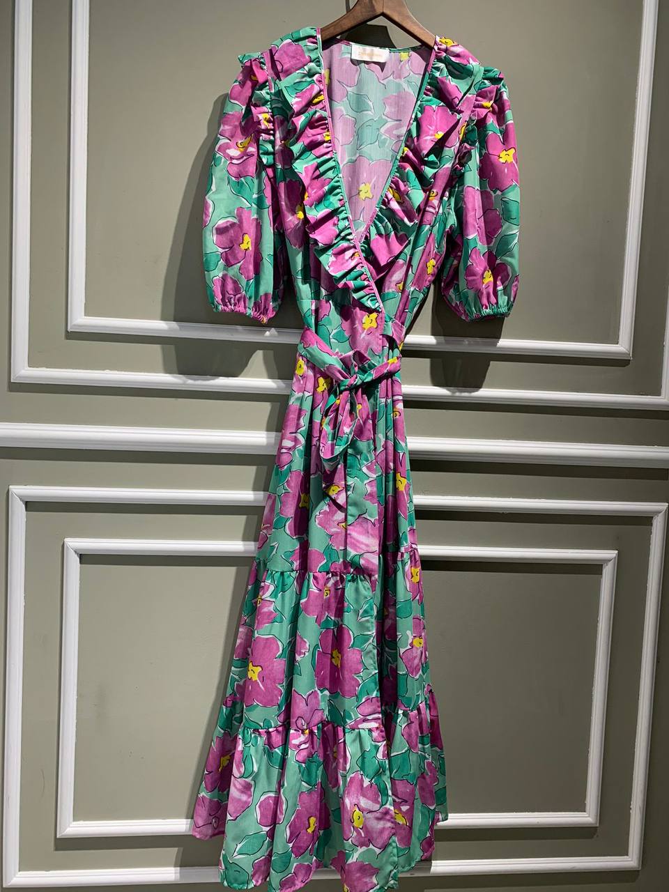 Платье LUX-67075 от Luxe Crime — это яркое и женственное произведение, выполненное в стиле бохо-шик. Его воздушный силуэт с воланами на вырезе и расклешенной юбкой, украшенной оборками, создает романтичный и непринужденный образ. Оригинальный цветочный принт на мятном фоне добавляет платью весенней свежести и настроения. Оно идеально подходит для летних прогулок, встреч с друзьями или тематических вечеринок.