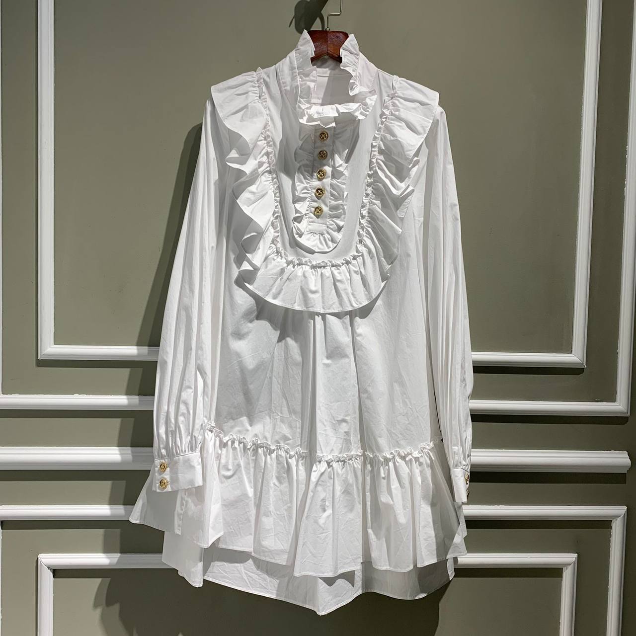 Платье LUX-67077 от бренда LUXE-CRIME представляет собой элегантное и женственное изделие в стиле викторианской эпохи. Сочетание пышных оборок, высокого воротника и золотистых пуговиц создает утонченный и романтичный образ. Платье идеально подходит для особых случаев, вечерних выходов или как яркий акцент в повседневном гардеробе.