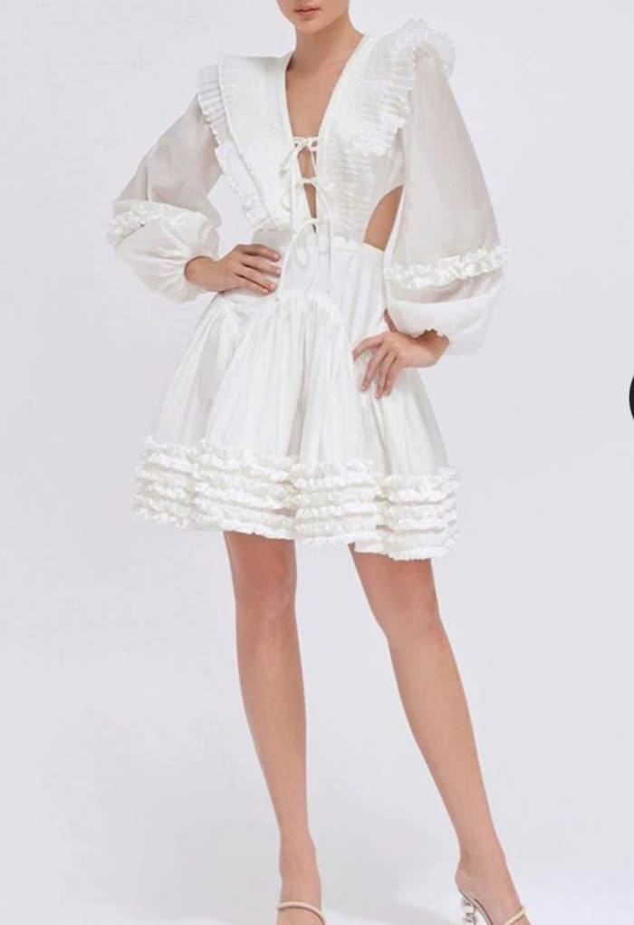 Платье LUX-69621 представляет собой изысканное творение бренда LUXE, выполненное в элегантном и романтичном стиле. Это короткое платье с пышной юбкой и объемными рукавами станет идеальным выбором для особых случаев. Оригинальный дизайн с рюшами и шнуровкой придает ему утонченный вид.