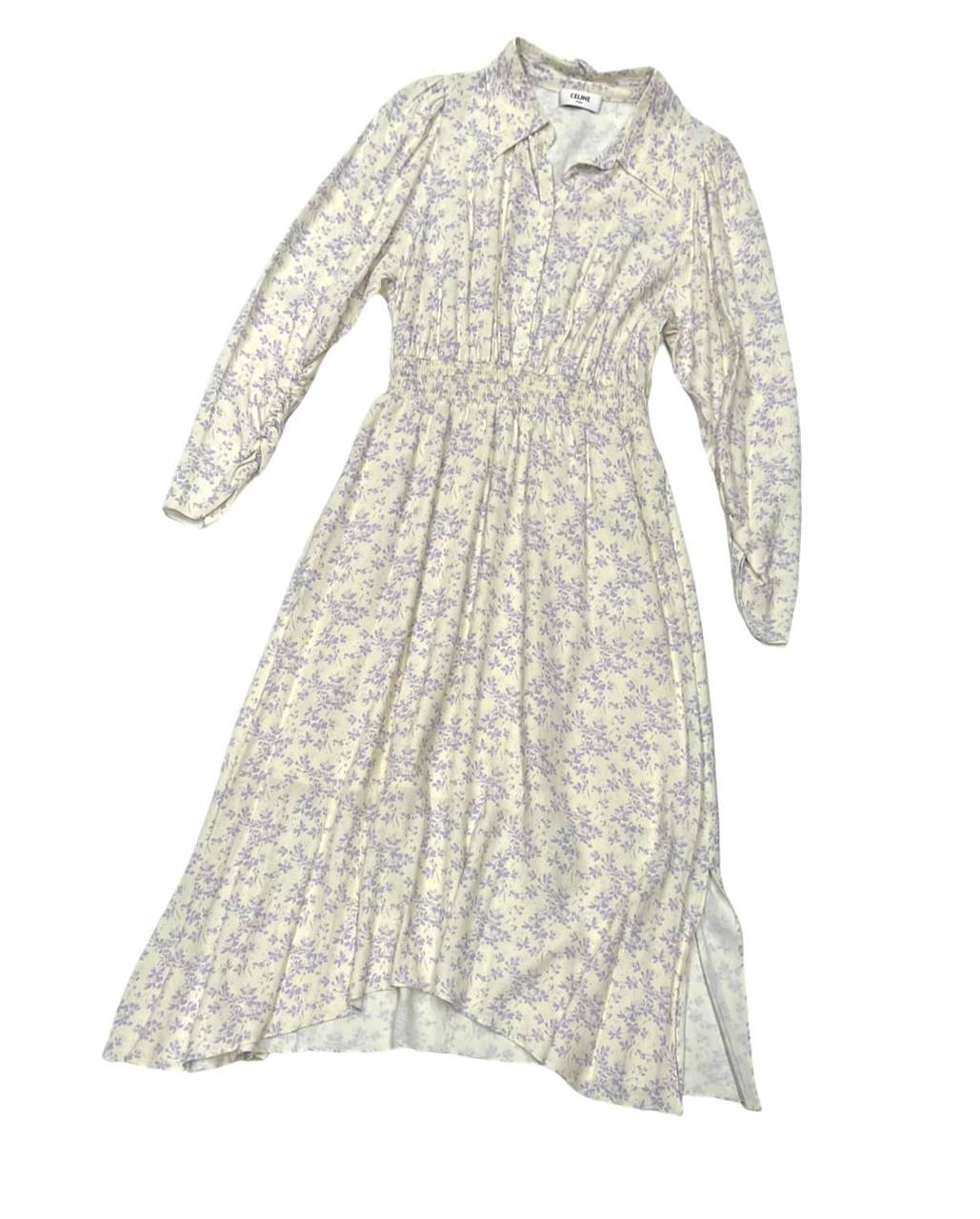 Платье LUX-69024 от бренда Celine — это изысканная модель в стиле кэжуал, выполненная в нежном кремовом оттенке с мелким цветочным принтом. Платье средней длины, с длинными рукавами и отложным воротником, создано для элегантных и женственных образов. Акцентная линия талии, подчеркнутая эластичной резинкой, придает силуэту изящность.