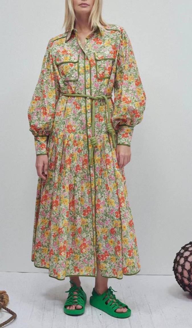 Платье LUX-70961 — это яркое платье в цветочный принт, выполненное в рубашечном стиле. Платье имеет приталенный силуэт, длинные рукава с манжетами и расклешенную юбку. Пояс подчеркивает талию, а декоративные детали добавляют образу женственности и элегантности.