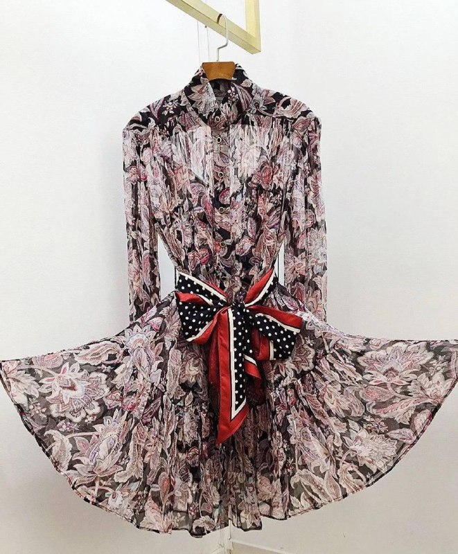 Это элегантное платье LUX-55580 от бренда Luxe Crime отличается утонченным дизайном и многослойным цветочным принтом. Модель с длинными рукавами и воротником-стойкой, декорирована объемным бантом на талии, сочетающим в себе красный и черно-белый горошек. Платье создает женственный и романтичный образ, идеально подходящий для особых случаев.
