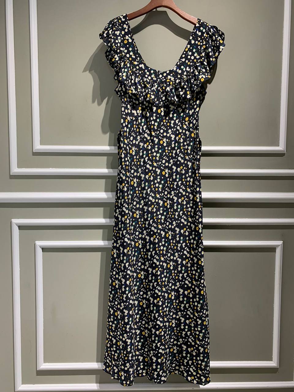 Платье LUX-71322 — это элегантное платье с цветочным принтом. Модель выполнена в темно-синем цвете с разноцветными горошинками, что придает ей изящество. Платье имеет воздушную текстуру и прекрасно подойдет для создания женственного образа.