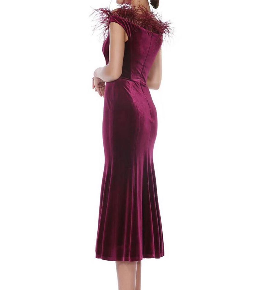 Вечернее платье LUX-24808 от LUXE-CRIME — это воплощение элегантности и роскоши. Модель выполнена в глубоком винном оттенке и украшена эффектным декором из перьев по вырезу "кармен", который открывает плечи. Платье облегающего силуэта с разрезом спереди добавляет образу чувственности и изысканности. Оно идеально подойдет для особых случаев, торжественных мероприятий и вечеринок, где хочется произвести незабываемое впечатление.