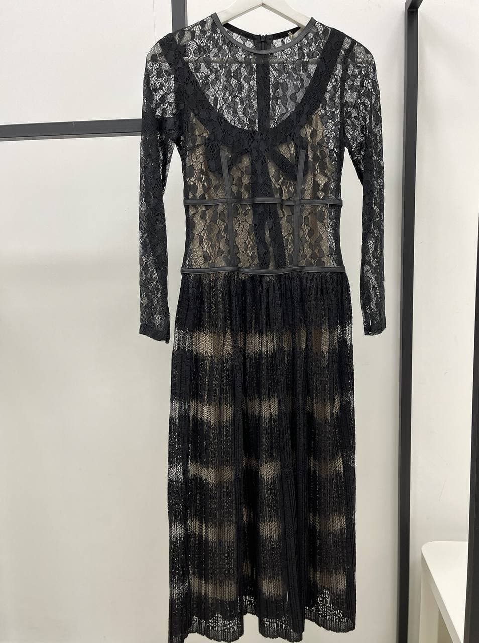 Платье Valentino LUX-59952 представляет собой изысканное творение в элегантном стиле, выполненное из тонкого кружева. Длинные рукава и многослойная юбка придают изделию утонченность, а декоративные ленты подчеркивают силуэт. Этот наряд идеально подойдет для особых случаев, где важен роскошный и женственный образ.