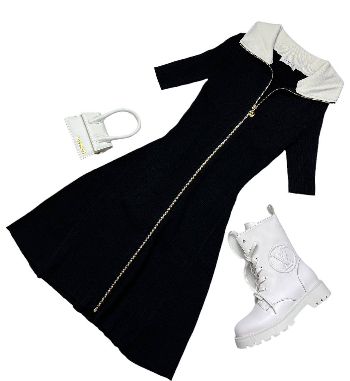 Платье LUX-77208 – это элегантное трикотажное платье черного цвета с контрастным белым воротником. Платье имеет текстуру в рубчик, застегивается на молнию по всей длине, что позволяет регулировать глубину выреза. Этот наряд подойдет для различных случаев, от повседневных выходов до более формальных мероприятий.