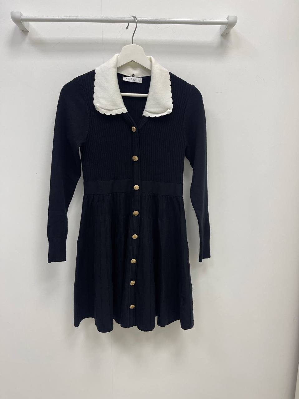 Платье Sandro LUX-80386 представляет собой элегантное мини-платье в черном цвете. Оно выполнено в стиле casual, подходит для повседневной носки, а также для создания более нарядных образов. Платье имеет приталенный силуэт и украшено белым воротником.
