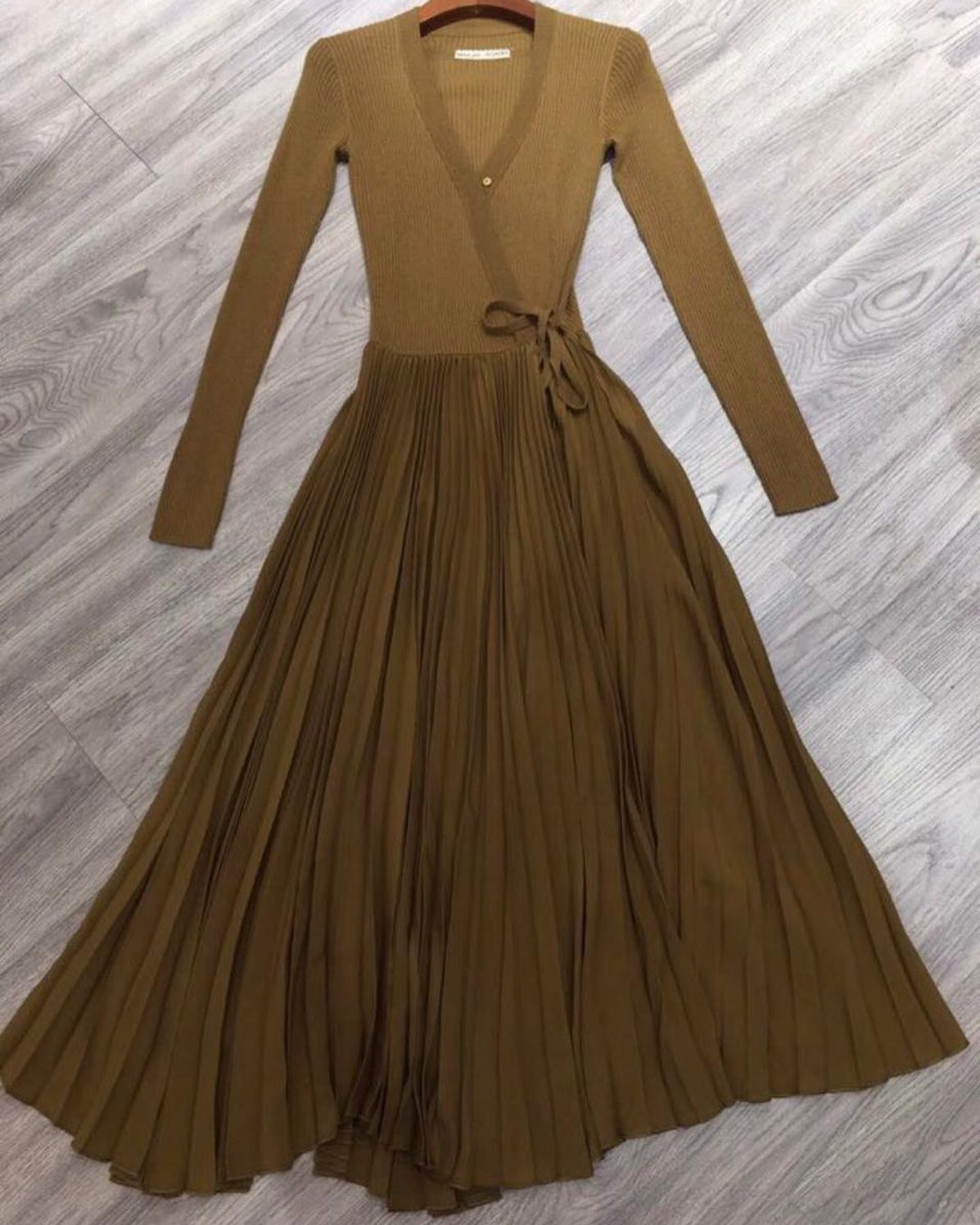 Это элегантное платье LUX-31705 бренда Luxe-crime — идеальный выбор для создания утонченного образа. Модель сочетает в себе приталенный верх с запахом и пышную плиссированную юбку, что придает ей женственности и особого шарма. Платье подходит как для повседневных выходов, так и для особых случаев, легко трансформируясь в зависимости от выбранных аксессуаров.