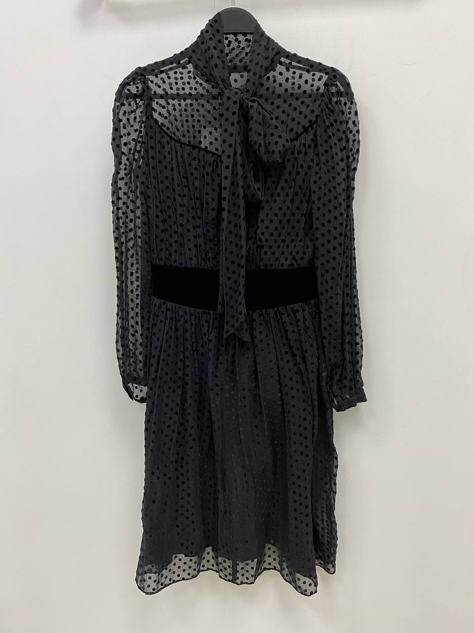 Платье LUX-80464 представляет собой изысканное платье в горошек, выполненное в классическом стиле. Черное платье с полупрозрачными рукавами и лифом, украшено небольшими круглыми узорами. Тонкий бархатный пояс подчеркивает талию, добавляя элегантности.