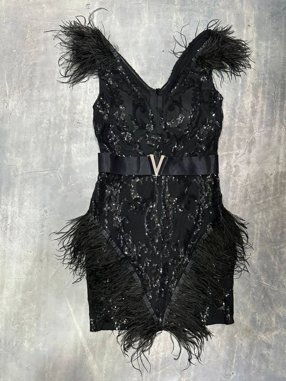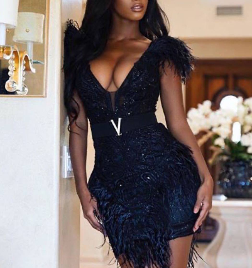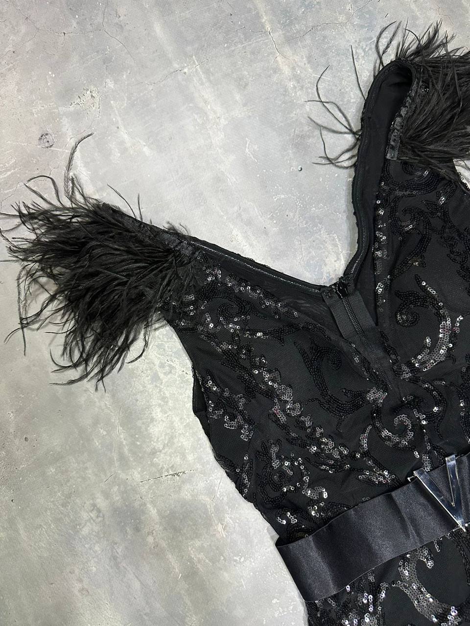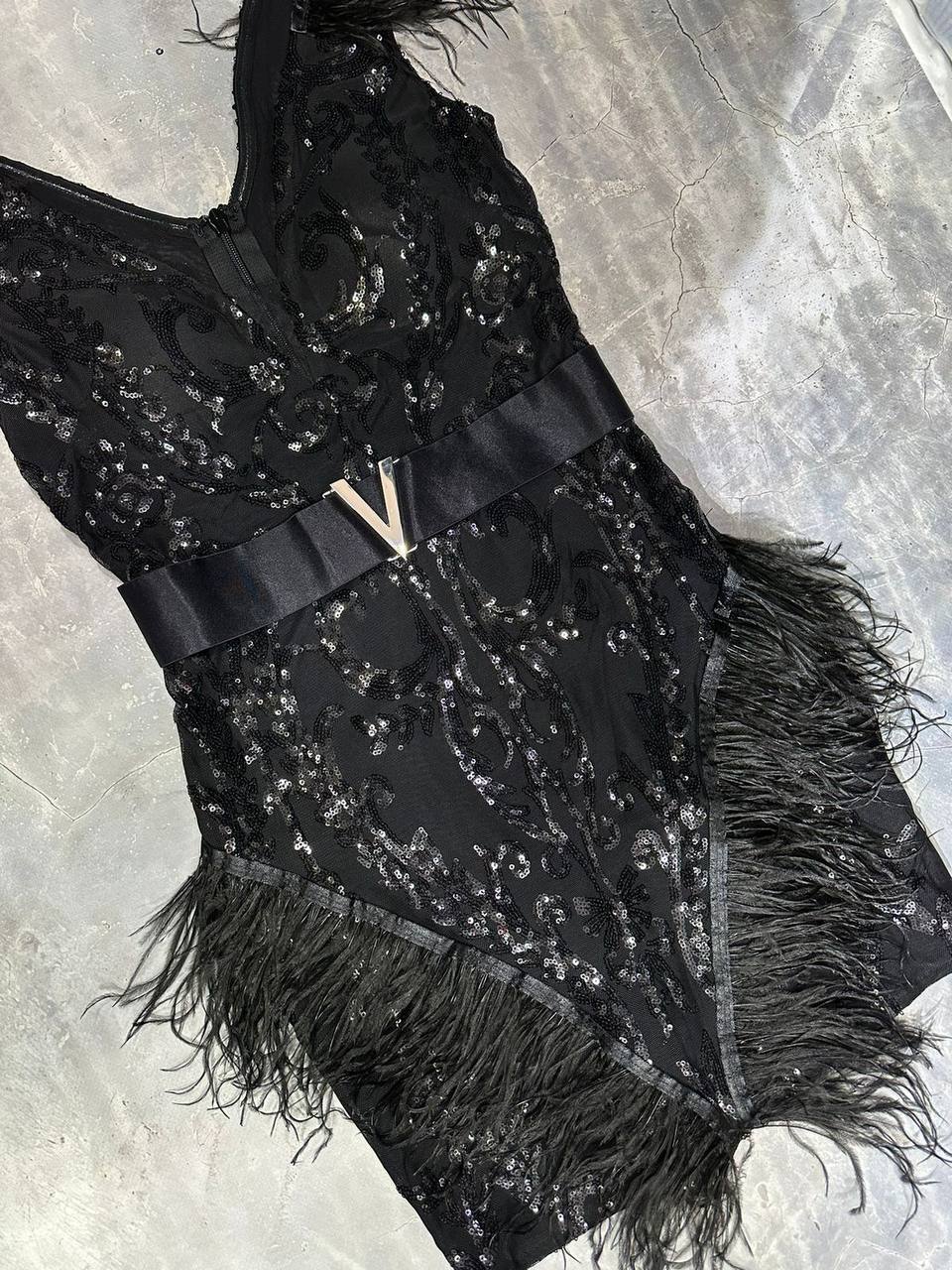 Платье LUX-99062 – это элегантное коктейльное платье, которое идеально подходит для торжественных мероприятий и вечерних выходов. Платье выполнено в чёрном цвете, украшено перьями и декорировано стразами. Яркий акцент — широкий пояс с пряжкой.