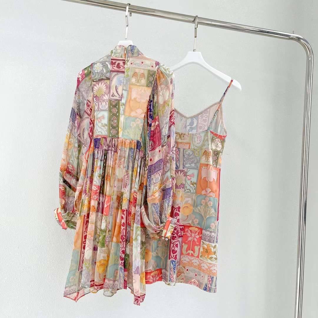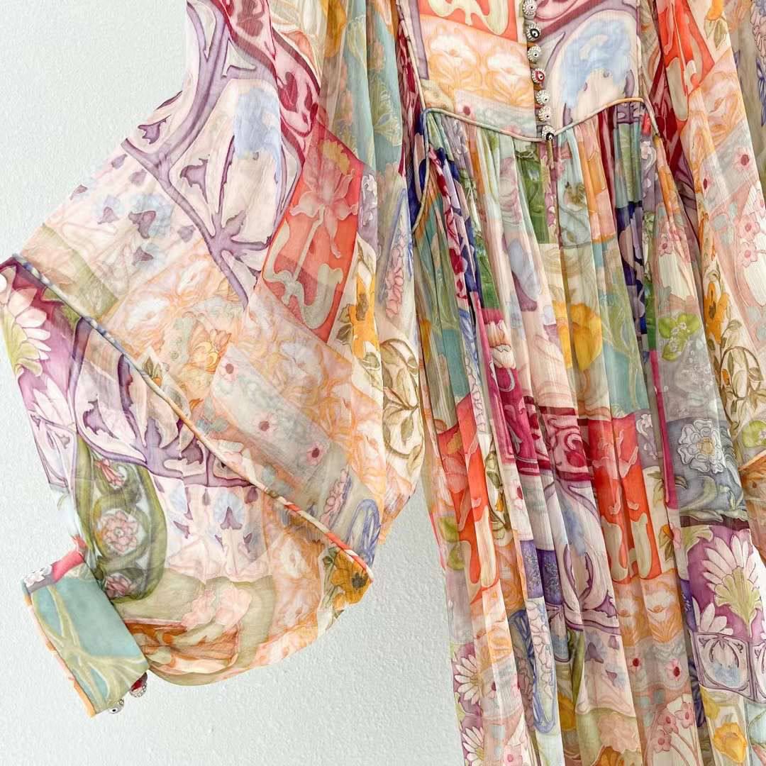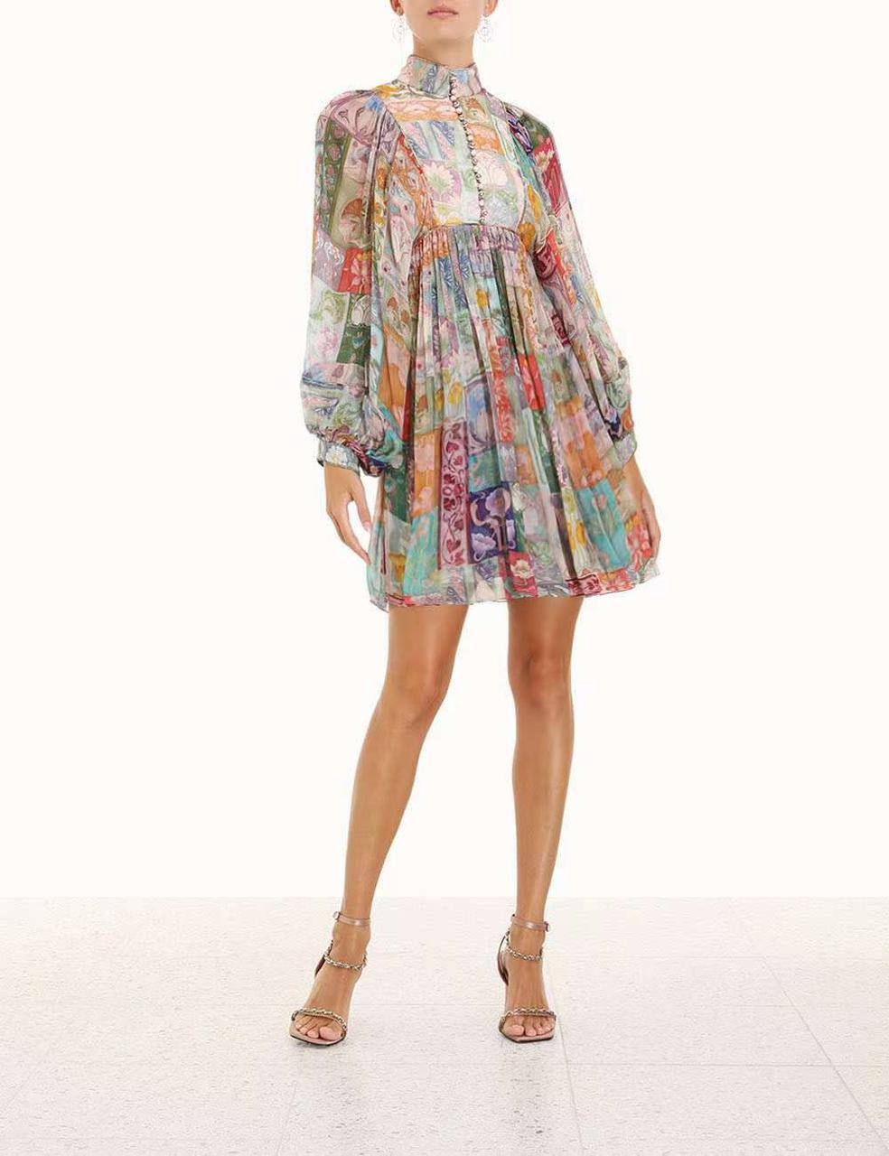 Платье LUX-83369 представляет собой элегантное мини-платье с длинными рукавами и высоким воротником. Платье выполнено в ярком разноцветном принте с элементами пэчворка. Этот наряд идеально подходит для создания стильного и запоминающегося образа.