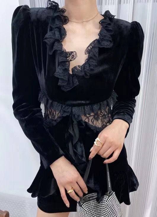 Элегантное платье LUX-60672 от Luxe Crime отличается романтичным стилем с элементами готики. Модель выполнена из бархата, что придает ей роскошный вид. Декорировано изделие оборками из кружева по вырезу и подолу, а также вставкой из кружева на талии, создавая женственный и загадочный образ.