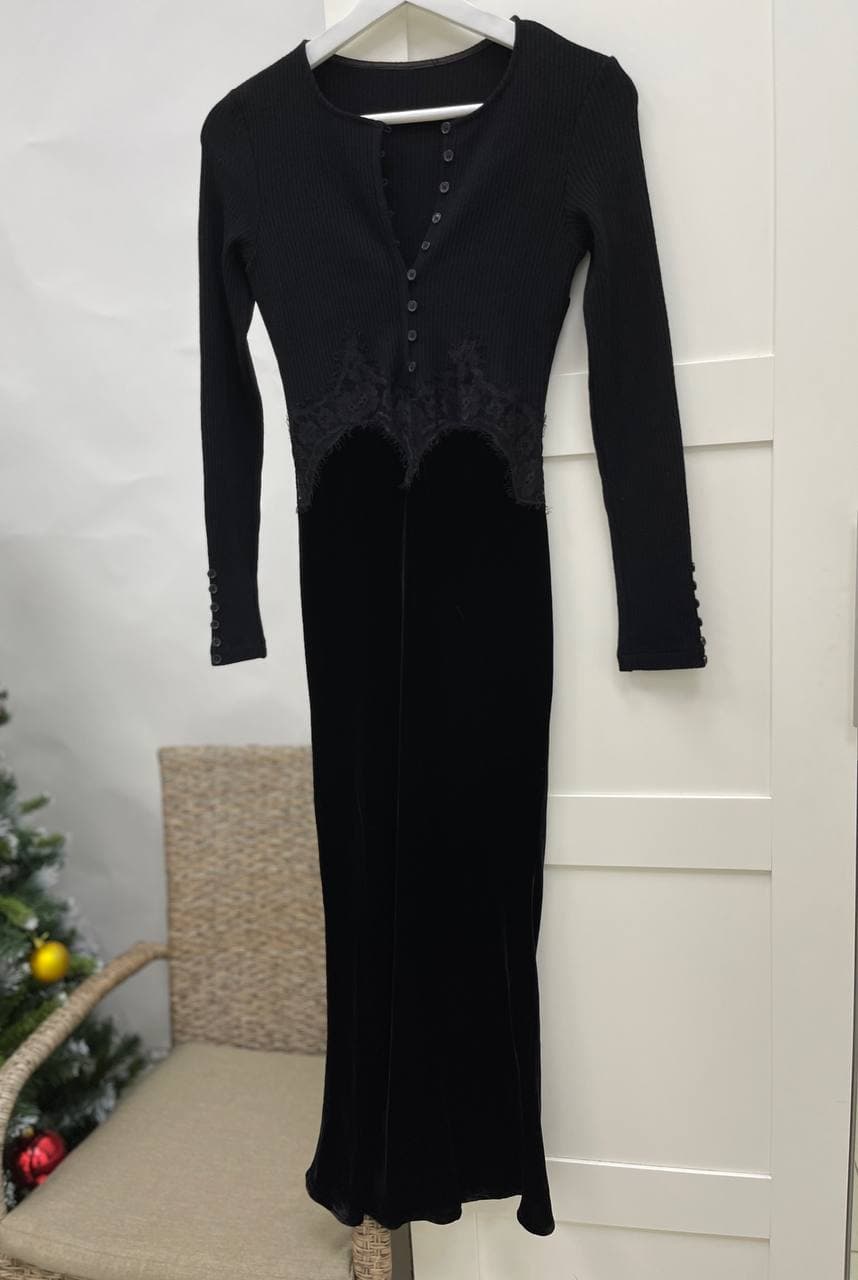 Платье LUX-60674 от LUXE-CRIME – это изысканная модель, сочетающая в себе элегантность и современный дизайн. Платье выполнено в черном цвете, идеально подходит для создания вечерних или коктейльных образов. Декоративная кружевная вставка на лифе и бархатная юбка придают изделию особую утонченность.