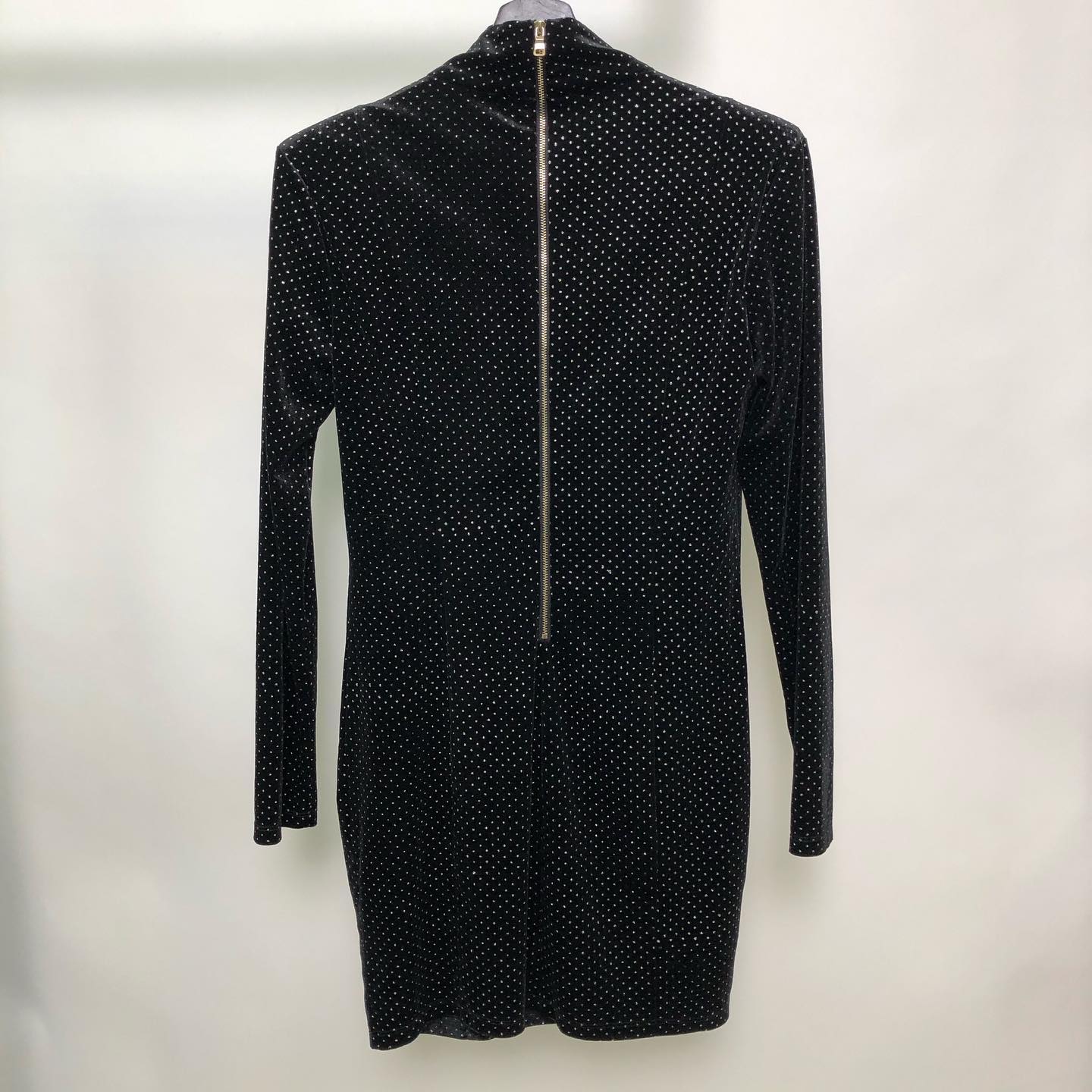 Платье LUX-41493 от Luxe Crime — это элегантное мини-платье с длинными рукавами, выполненное в черном цвете. Модель украшена мелким серебристым принтом в горошек, который придает изделию праздничный и изысканный вид. Особый шарм платью придает декоративный элемент на плече, выполненный в виде крупного банта или драпировки.