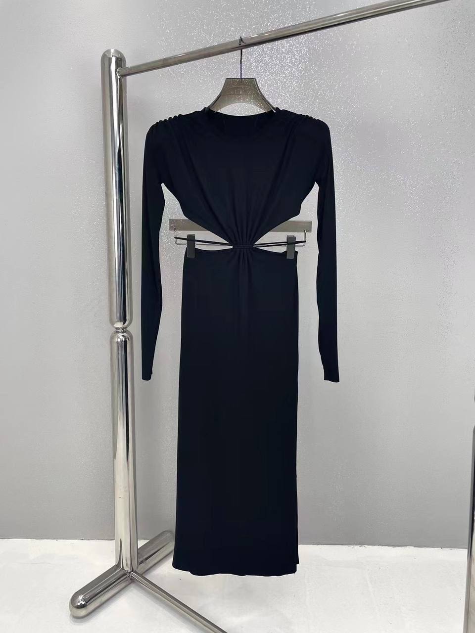 Платье LUX-86351 представляет собой элегантное черное платье, которое подойдет для различных мероприятий. Его стиль можно охарактеризовать как современный и утонченный, с акцентом на минимализм. Платье имеет длинные рукава и вырезы на талии, что придает ему изысканный вид.