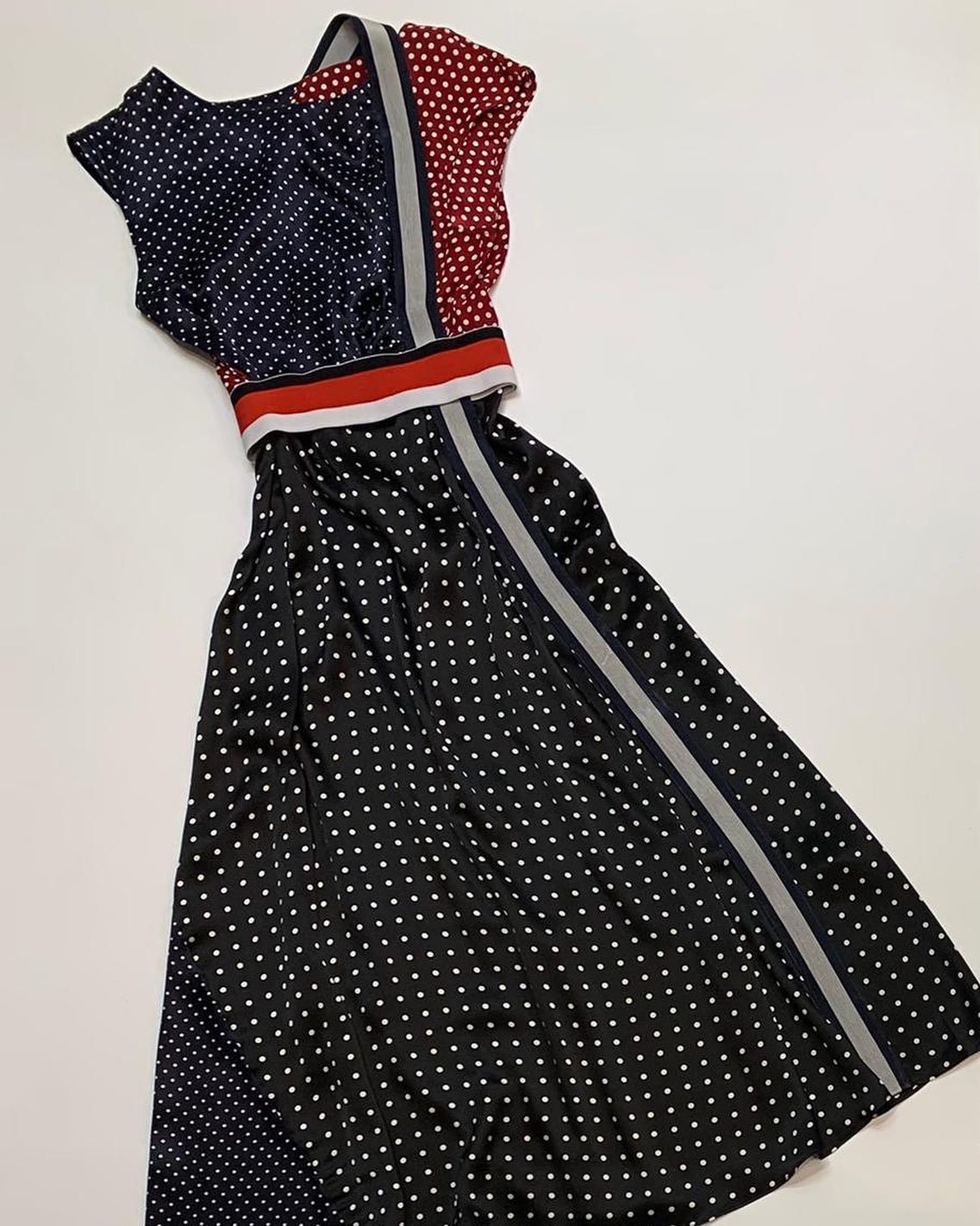 Это стильное платье LUX-46436 от бренда LUXE-CRIME сочетает в себе классический горошек с современными элементами. Сочетание темно-синего и красного верха с черной юбкой в белый горошек создает элегантный и запоминающийся образ. Благодаря своей универсальности, оно подойдет как для повседневных выходов, так и для особых случаев.
