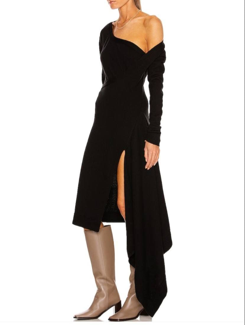 Это элегантное черное платье LUX-59725 идеально подходит для создания запоминающегося вечернего образа. Асимметричный крой с одним открытым плечом и высоким разрезом на бедре придает ему особую пикантность и утонченность. Платье создает женственный и модный силуэт, подчеркивая достоинства фигуры.