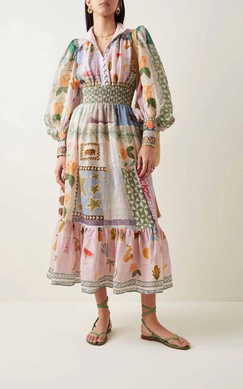 Платье LUX-91585 - это выразительное платье с ярким принтом, выполненное в богемном стиле. Оно сочетает в себе разные элементы дизайна, создавая уникальный образ. Пастельные оттенки розового, голубого, зеленого и белого гармонично сочетаются с различными узорами и изображениями. Платье имеет свободный крой и может использоваться как для повседневной носки, так и для особых случаев.