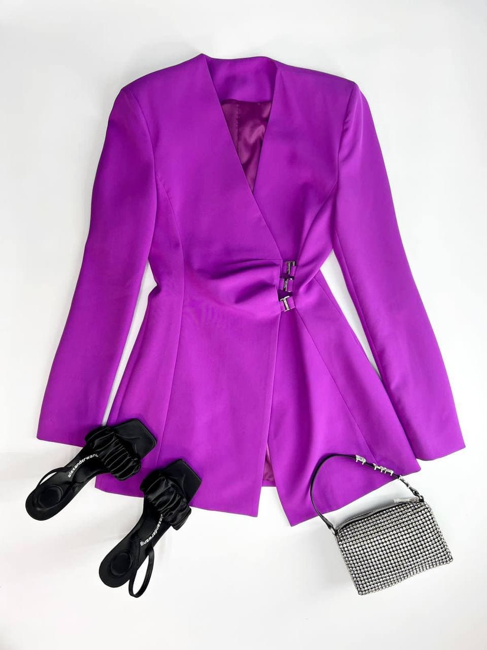 Платье LUX-62801 – это стильное и элегантное платье-жакет бренда Luxe Crime. Оно выполнено в насыщенном фиолетовом цвете и имеет приталенный силуэт, подчеркивающий фигуру. Оригинальный крой с запахом и декоративными элементами делает его прекрасным выбором для особых случаев.