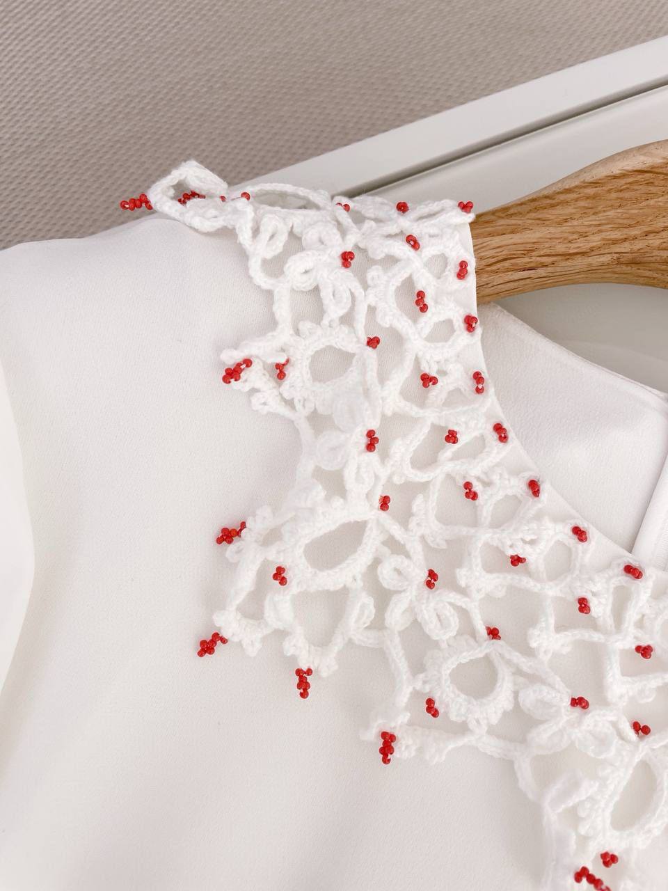Платье LUX-101177 представляет собой изысканное платье в белом цвете с длинными рукавами и элегантной сборкой на юбке. Воротник украшен декоративными элементами. Это платье идеально подойдет для создания утонченного и женственного образа, подчеркивающего вашу индивидуальность.