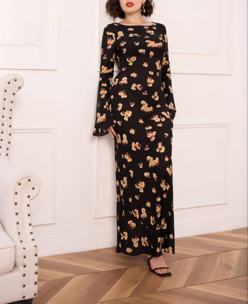 Платье LUX-103595 – это элегантное платье с длинными рукавами и расклешенными манжетами, выполненное в черном цвете с цветочным принтом. Дизайн платья предполагает свободный крой, что обеспечивает комфорт и свободу движений. Платье идеально подходит для повседневной носки, а также для создания более нарядных образов.