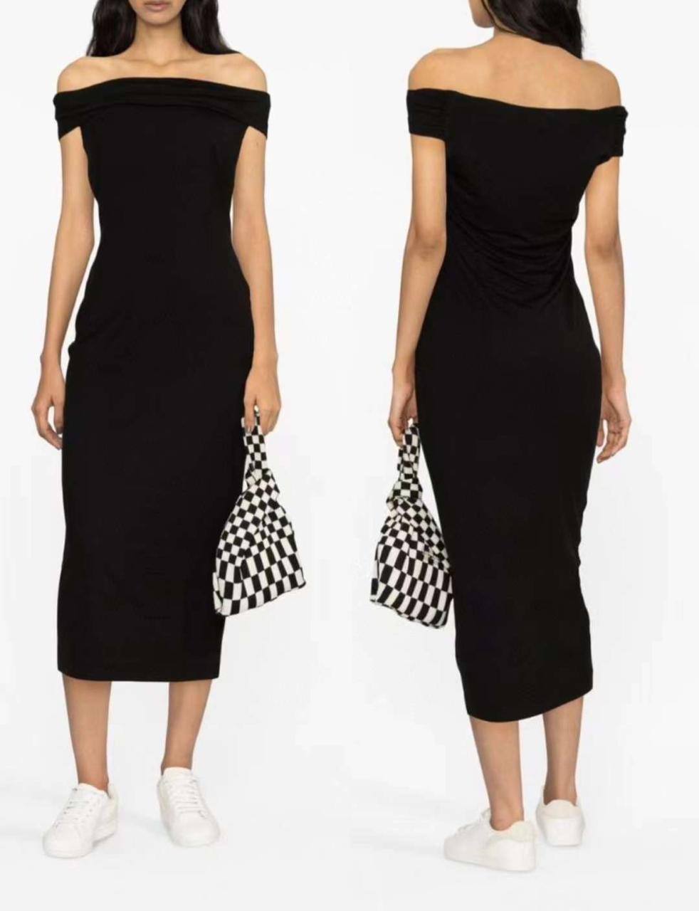 Платье LUXE-104454 представляет собой элегантное черное платье-миди, выполненное в минималистичном стиле. Оно имеет открытые плечи и облегающий силуэт, который подчеркивает фигуру. Идеально подходит для создания как повседневных, так и вечерних образов.