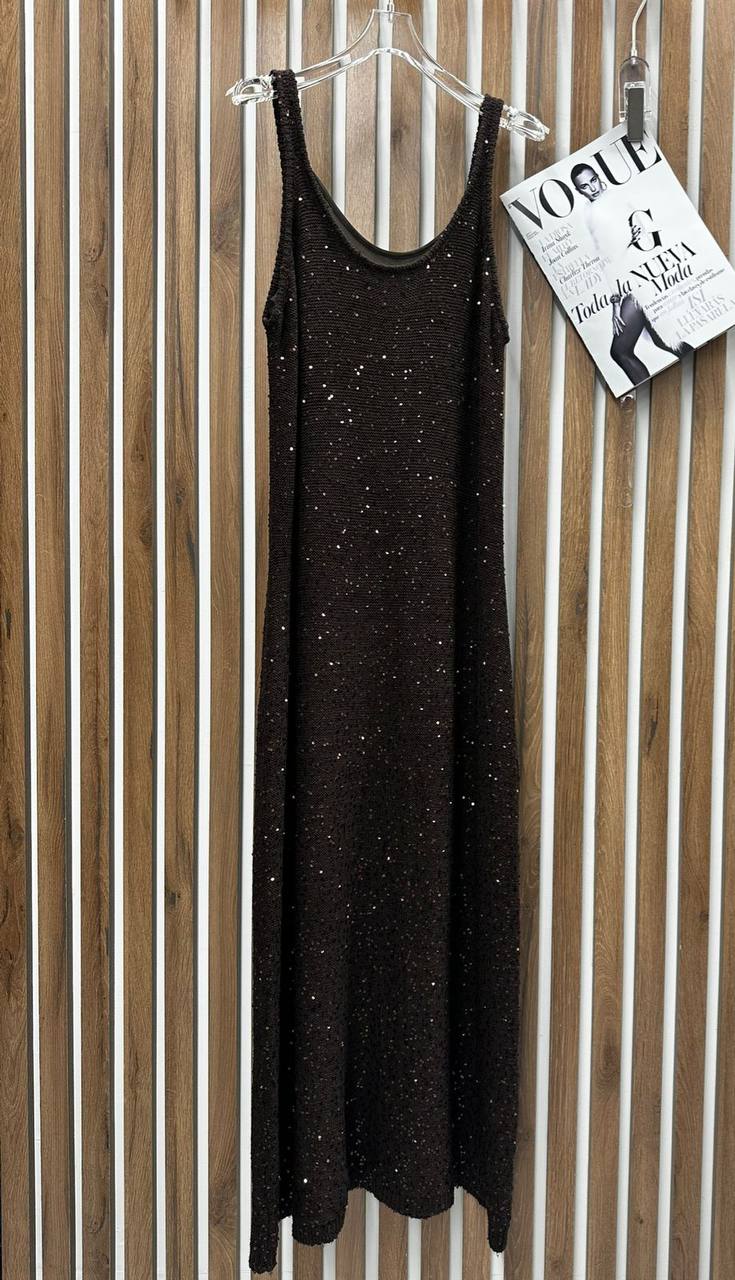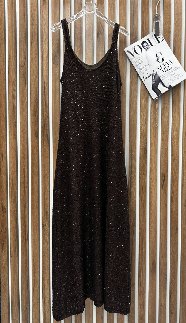 Платье LUX-119412 — это вечернее платье с блестящей фактурой. Платье выполнено в темном цвете, оно идеально подойдет для торжественных мероприятий. Модель с открытыми плечами и свободным кроем обеспечивает комфорт и элегантность.