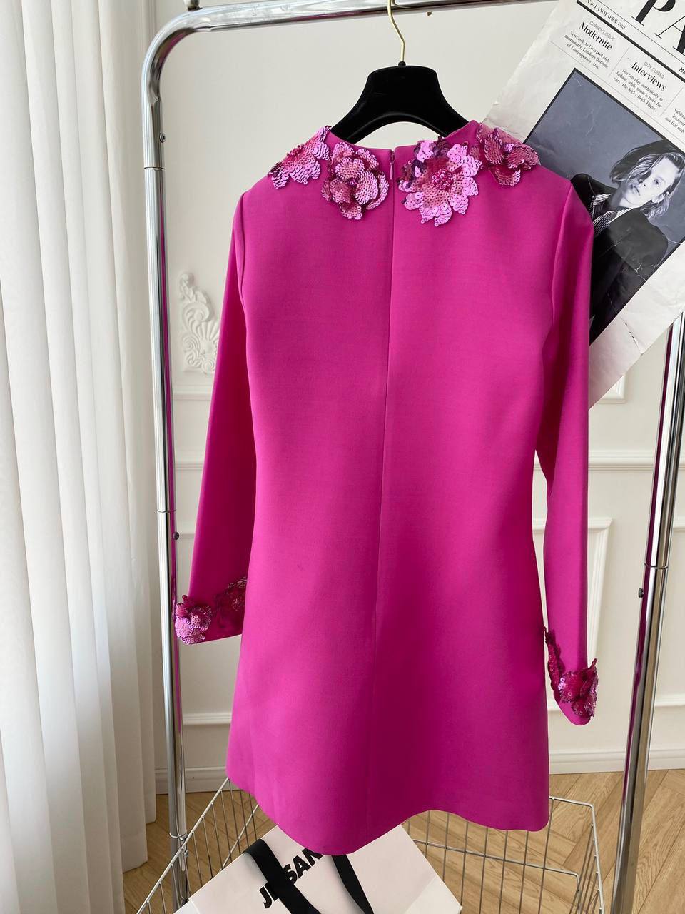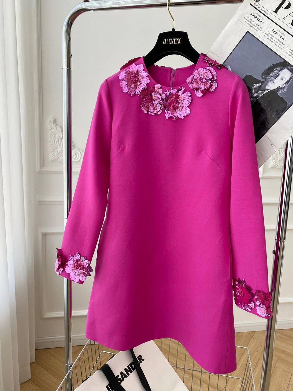 Платье VALENTINO LUX-113475 — это воплощение элегантности и женственности. Ярко-розовое платье А-силуэта, украшенное объемными цветочными аппликациями на воротнике и манжетах, создает неповторимый образ. Идеально подходит для торжественных мероприятий, подчеркивая утонченный вкус своей обладательницы.