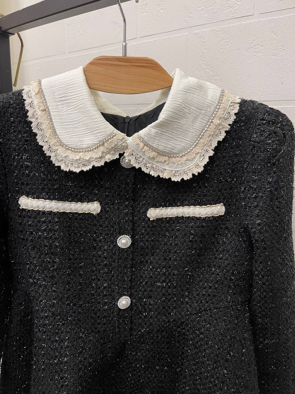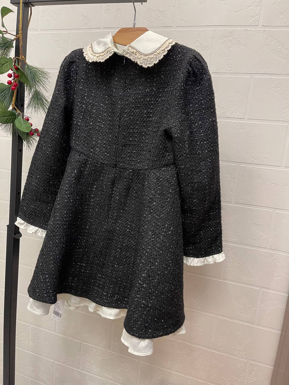 Платье LUX-113790 – это элегантное платье в классическом стиле. Оно выполнено в черном цвете с текстурой, напоминающей твид, и дополнено контрастным белым воротником и отделкой. Платье подойдет для создания утонченных образов.