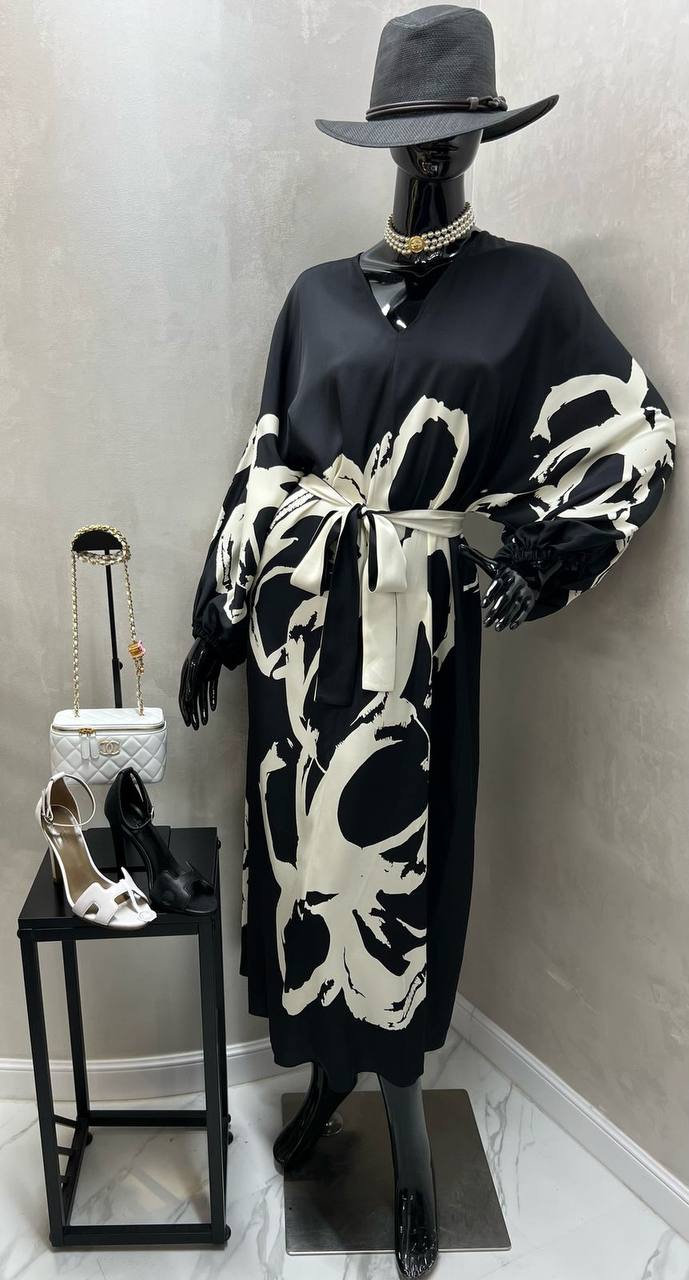 Платье LUX-117430 представляет собой элегантное платье макси, выполненное в черно-белых тонах. Свободный крой и широкие рукава создают непринужденный, но в то же время стильный образ. Выразительный принт и пояс на талии подчеркивают индивидуальность изделия.