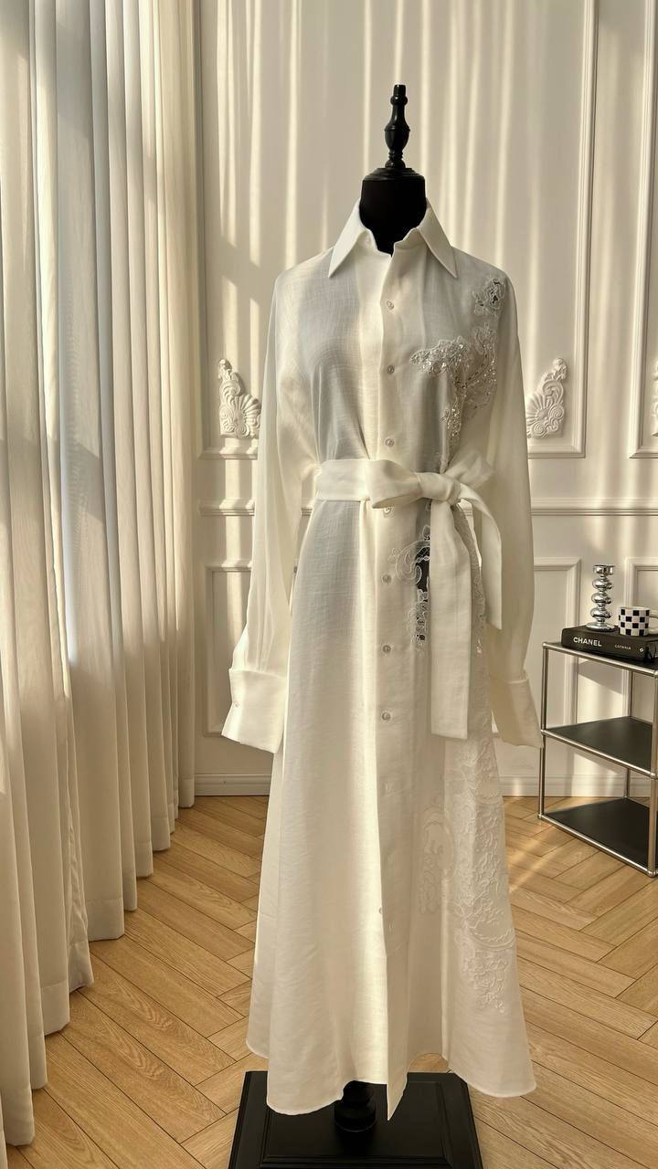 Платье LUX-117597 — элегантное белое платье-рубашка, воплощающее стиль и изысканность. Оно выполнено в классическом крое с акцентом на деталях, таких как пояс, подчеркивающий талию, и изысканные вышивки на лифе и подоле. Это платье подойдет для создания утонченного и запоминающегося образа.