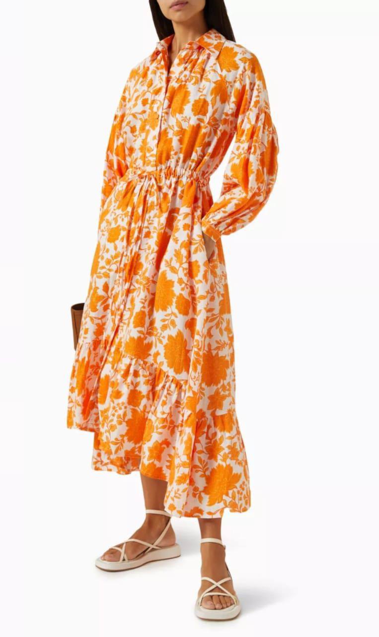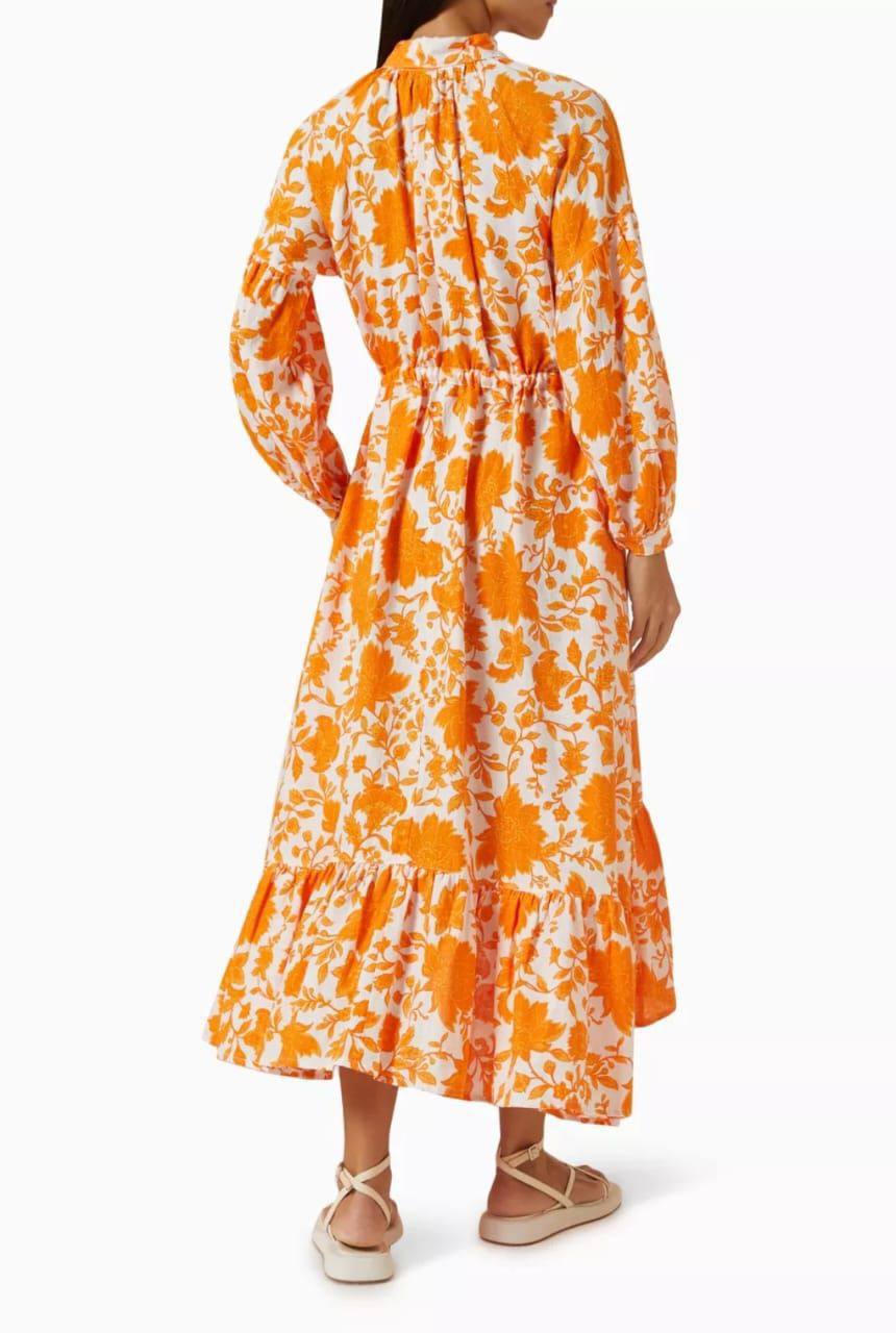 Платье LUX-119908 – это элегантное платье с цветочным принтом, которое подчеркнет вашу женственность. Яркий оранжевый принт на белом фоне создает летнее настроение. Идеально подходит для повседневной носки или особых случаев.