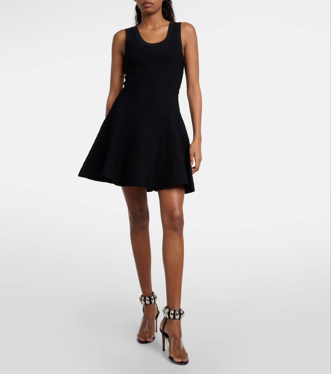Платье Alaia (артикул LUX-100949) — элегантное черное платье, выполненное в стиле минимализма с акцентом на текстуру ткани. Платье имеет приталенный силуэт и расклешенную юбку, что придает ему женственный и изысканный вид. Оно подходит для различных мероприятий, от повседневных встреч до вечерних выходов.