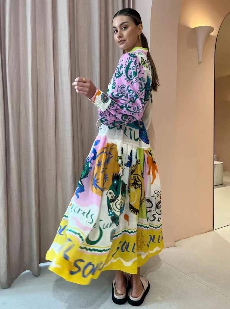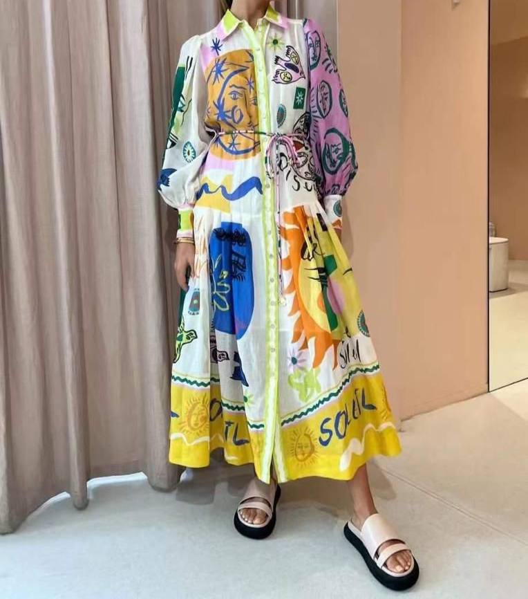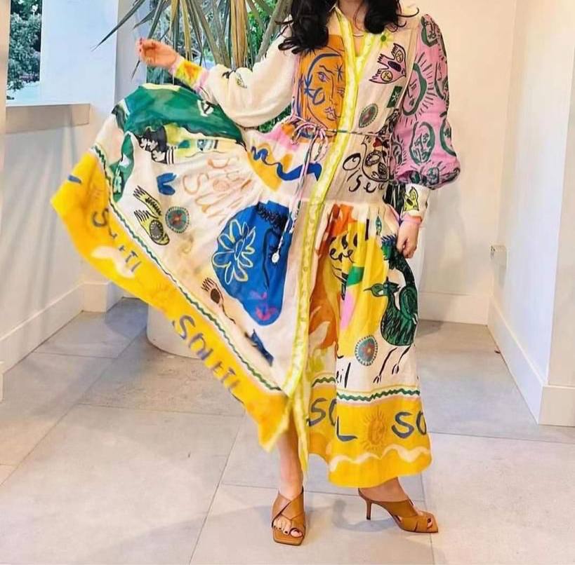 Платье Alemais LUX-88075 представляет собой яркое платье с принтом, выполненное в стиле бохо. Основной цвет – белый, с разноцветными элементами дизайна: желтым, оранжевым, синим и розовым. Платье имеет свободный крой и может быть использовано для различных образов.